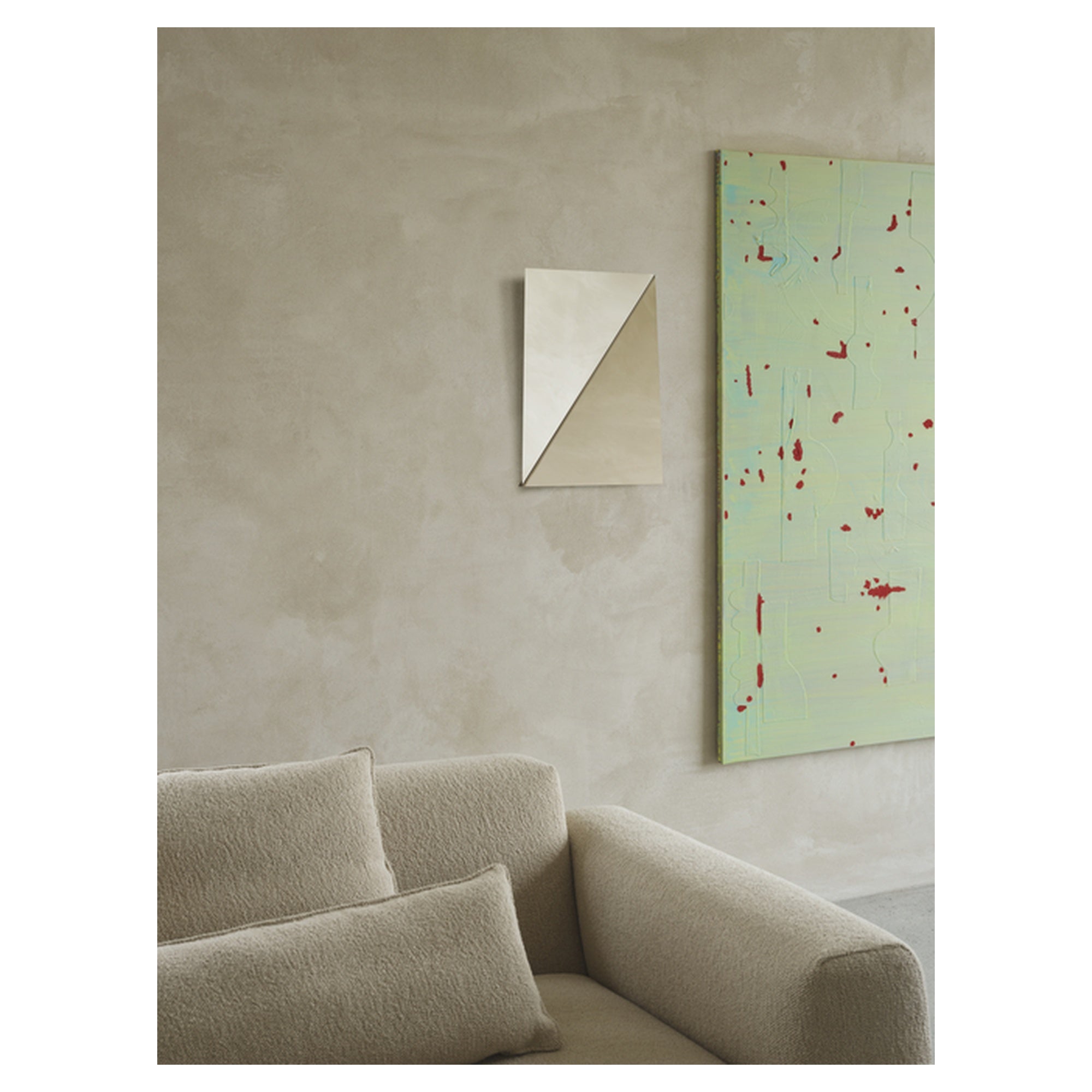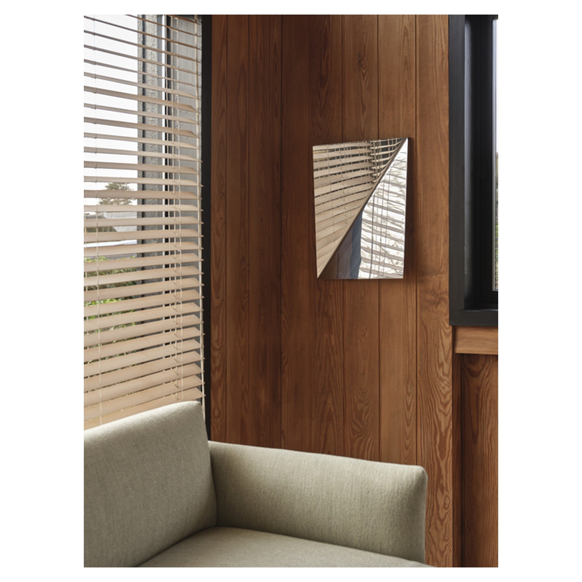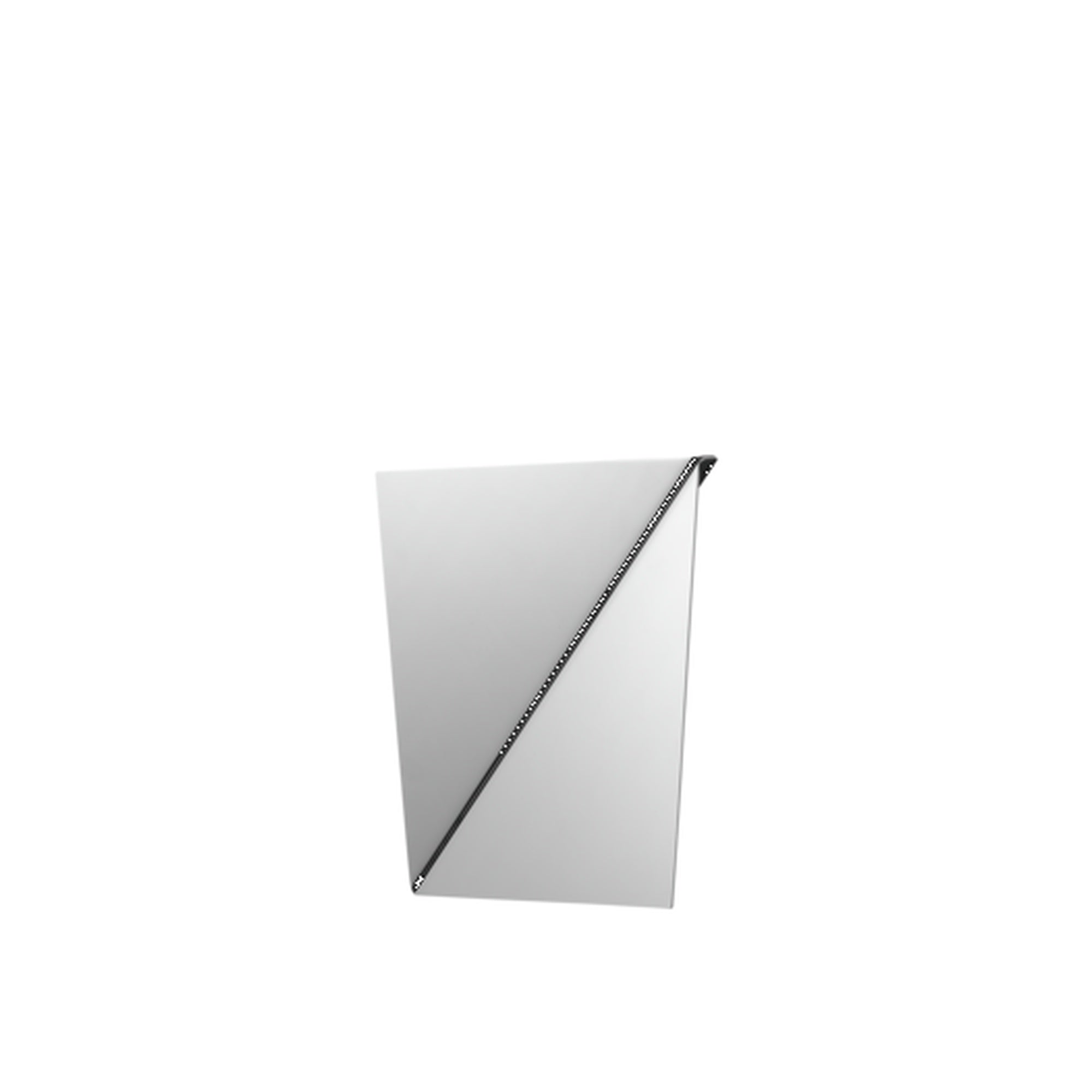 Made from two folded pieces of mirror-polished stainless steel, the Gaze Mirror is a sculptural and elegant wall-mounting structure. The angled surfaces catch light and surroundings in surprising ways, creating a dynamic visual as you move around the piece. Available in two sizes, Gaze adds a subtle yet impactful accent to any space.