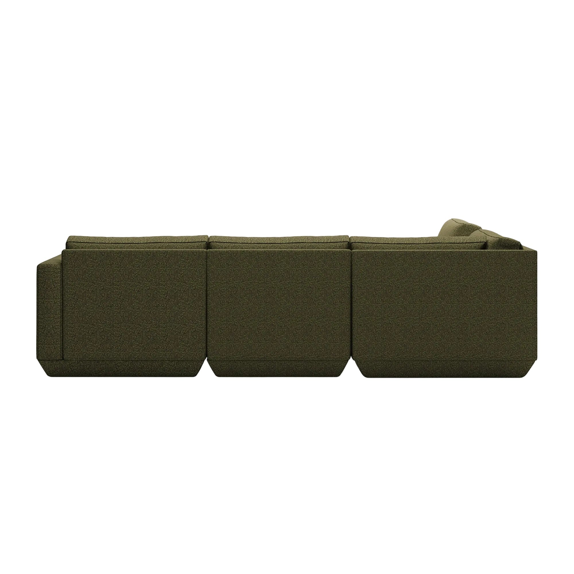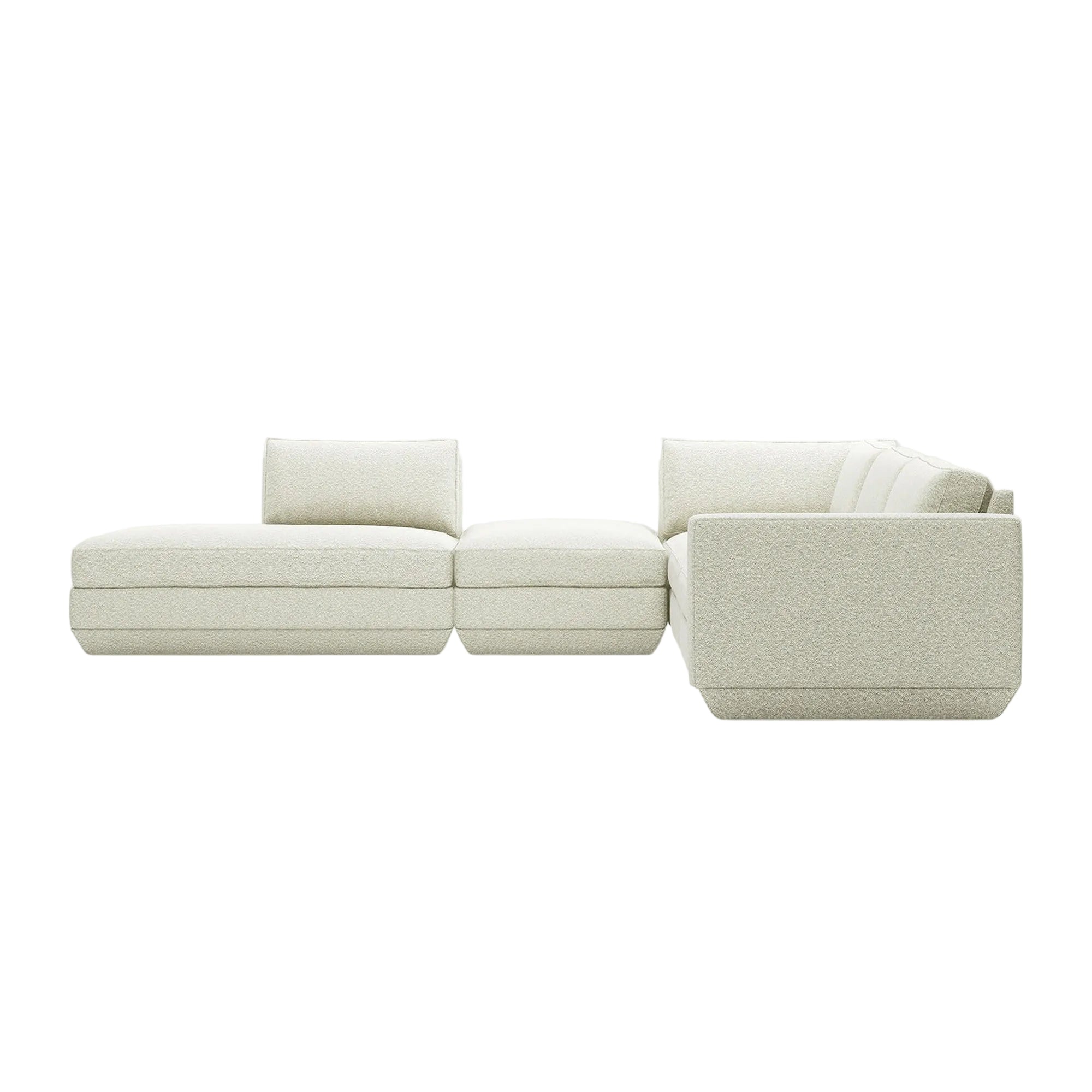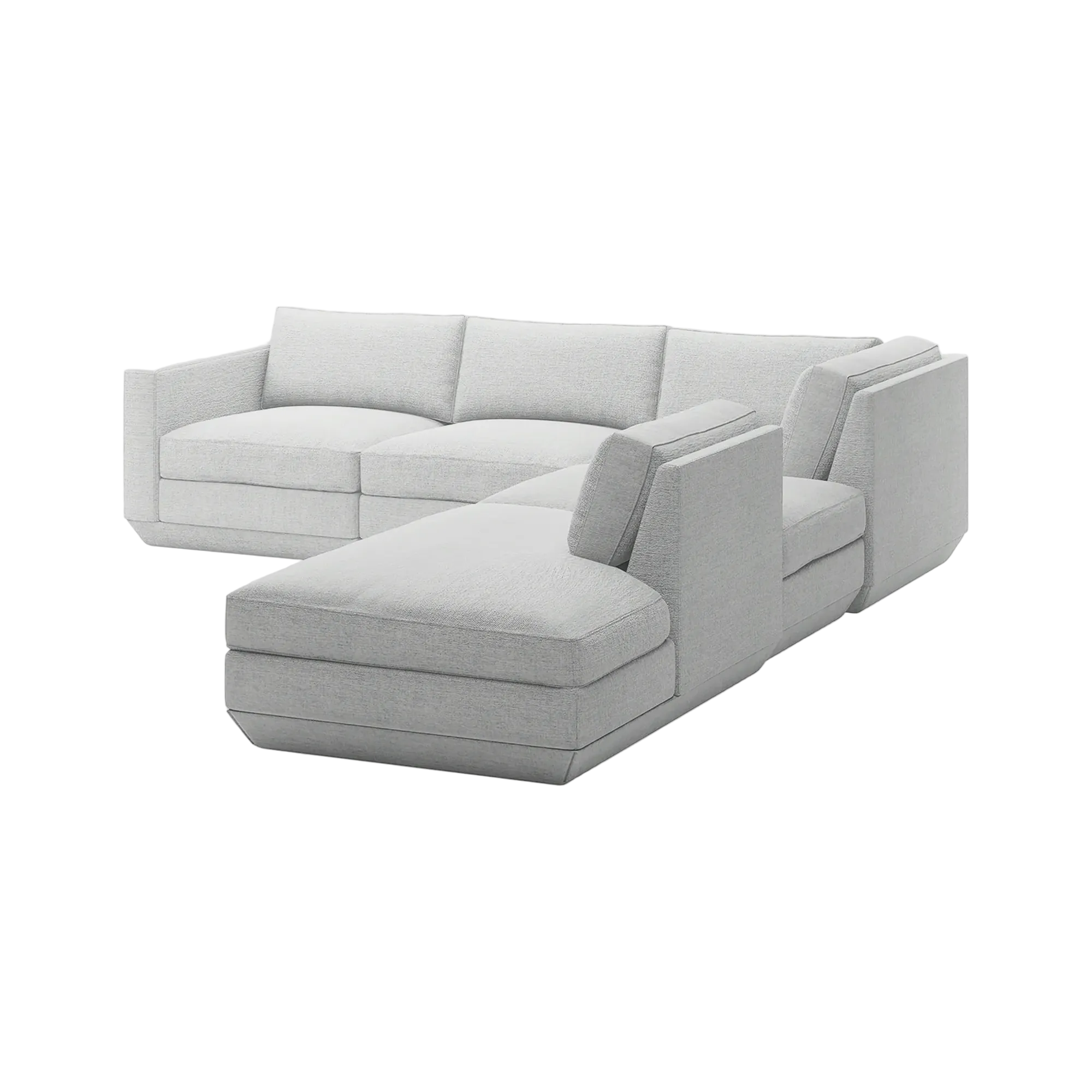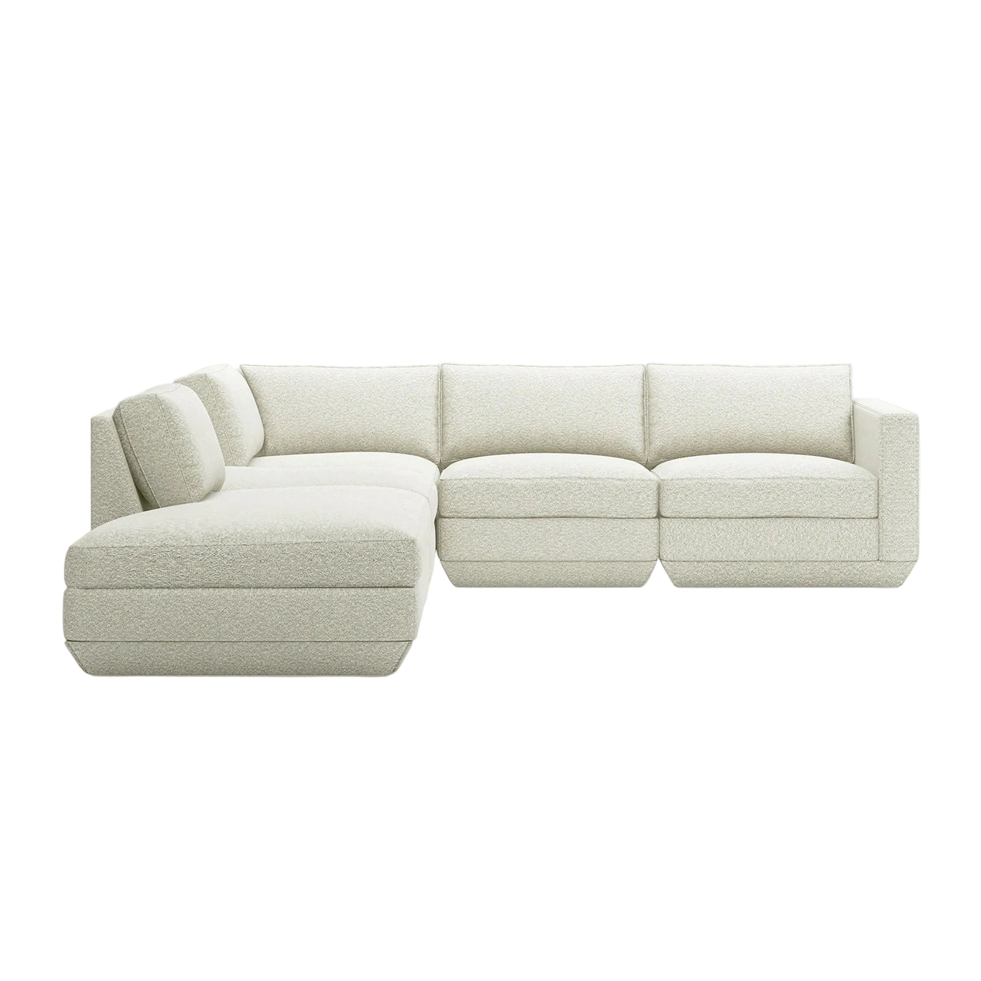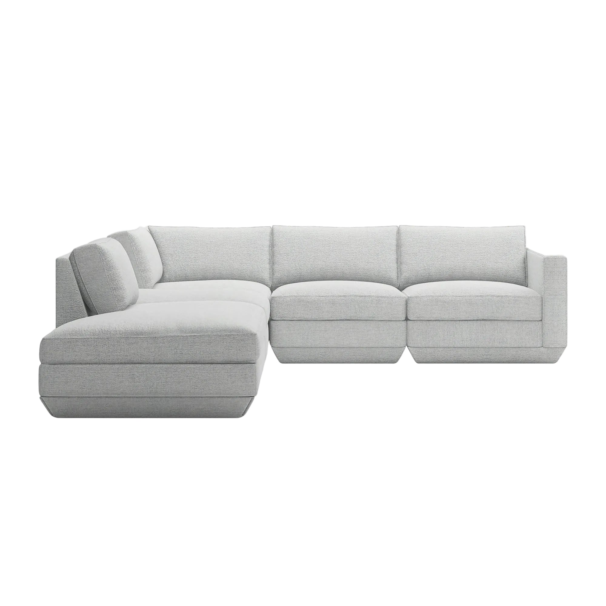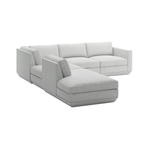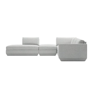 The Podium Modular Collection by GUS* Modern is an adaptable seating system that brings modern elegance and luxurious comfort to any space. The Podium features seven core components (Right Arm, Left Arm, Armless, Corner, Ottoman, Left Lounge and Right Lounge) that can be arranged in unlimited configurations to suit any vision or layout. Components can then be easily reconfigured or added later to adapt to your evolving lifestyle. Each component showcases a relaxed silhouette inspired by 1970’s Modernism: a low and deep sit created by plush seat and back cushions (filled with eco-friendly synthetic down derived from recycled water bottles), and an attractive, subtly angled, chamfered base.