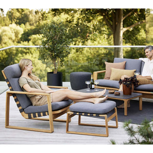 The base is constructed from durable teak wood, showcasing its natural beauty and strength. The wickerwork is crafted from Cane-line Soft Rope, known for its weather resistance and elegant appearance. The cushion is made with Cane-line AirTouch fabric and includes a QuickDry & Airflow system. To preserve the original unique teak colour and maintain the fine teak wood, we recommend using Cane-line Teak Care products.