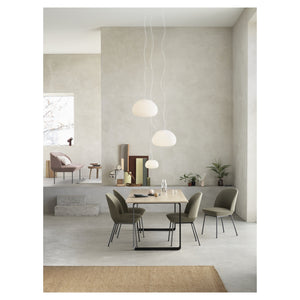 Inspired by a resting drop of water, the Fluid Pendant Lamp shows how soft light can diffuse across a space for a cosy atmosphere. The frosted matte surface creates a glowing ambience that fits into any home or casual business setting. Present the design individually or in a group for an intimate atmosphere.
