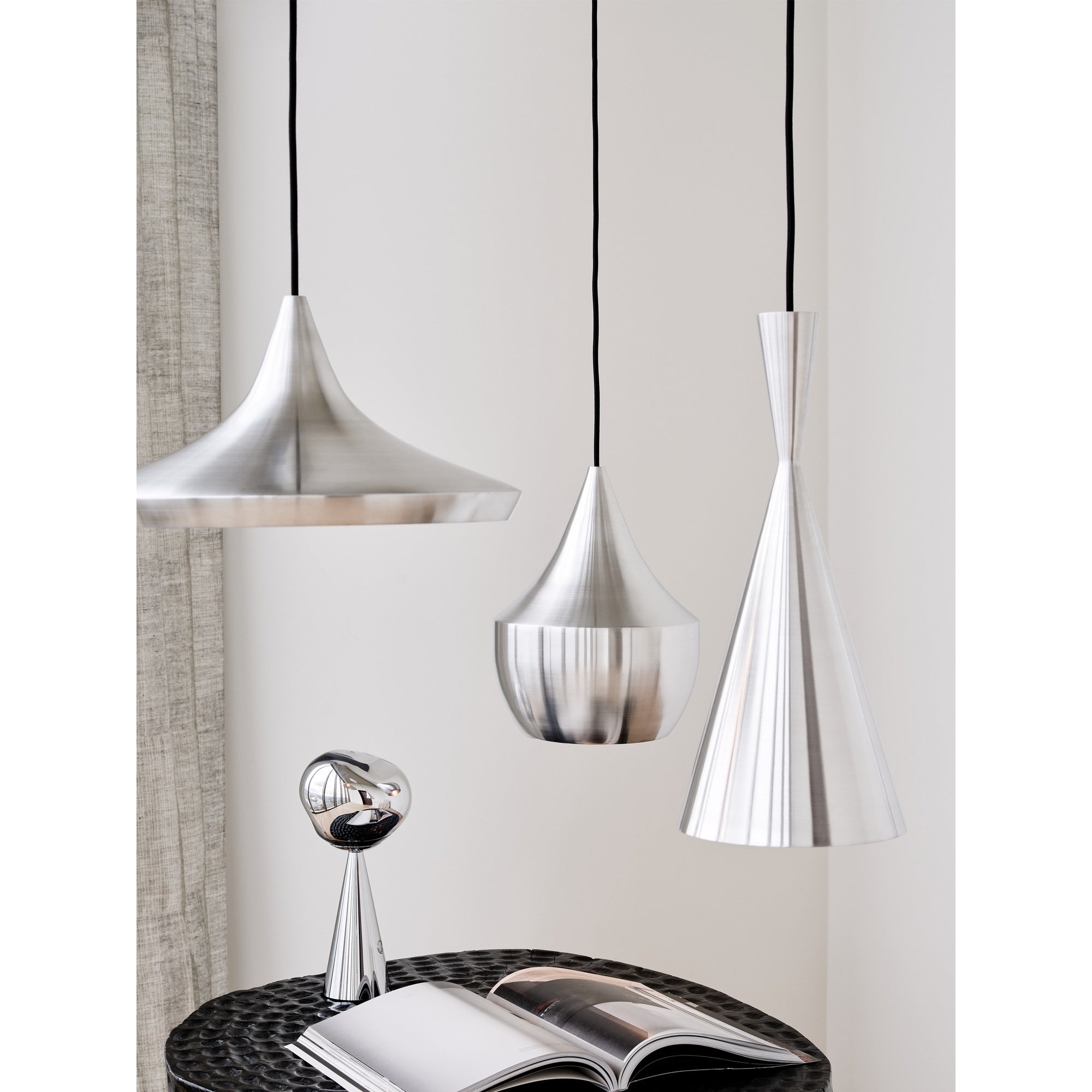 Introducing Unbeaten, by Tom Dixon an inevitable evolution of the original iconic Beat. While the original Beat emphasised the exceptional and rapidly disappearing handicraft skills of the metalworkers of Moradabad, Unbeaten showcases hand-spun and hand-brushed aluminium. A sleeker, more refined version of Beat, Unbeaten features thicker metal, superior illumination and electrical components, celebrating the raw state of aluminium and exhibiting its materiality in its naked form.