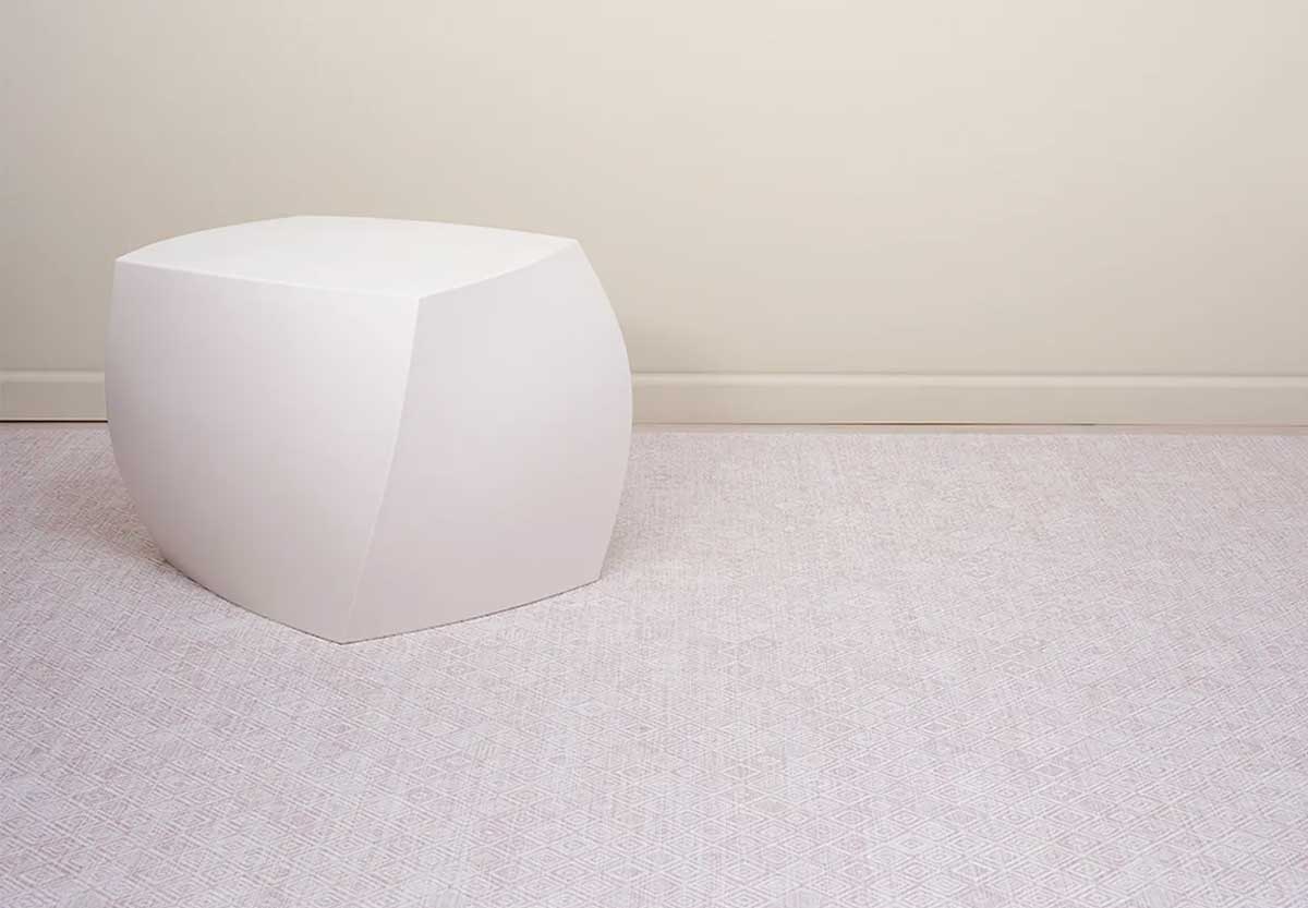 Sandy Chilewich reimagined the traditional diamond twill in this beautiful floormat. Signature bi-color yarns in shades of white and light grey create a woven diamond pattern that seems to fade in-and-out, like an heirloom rug.