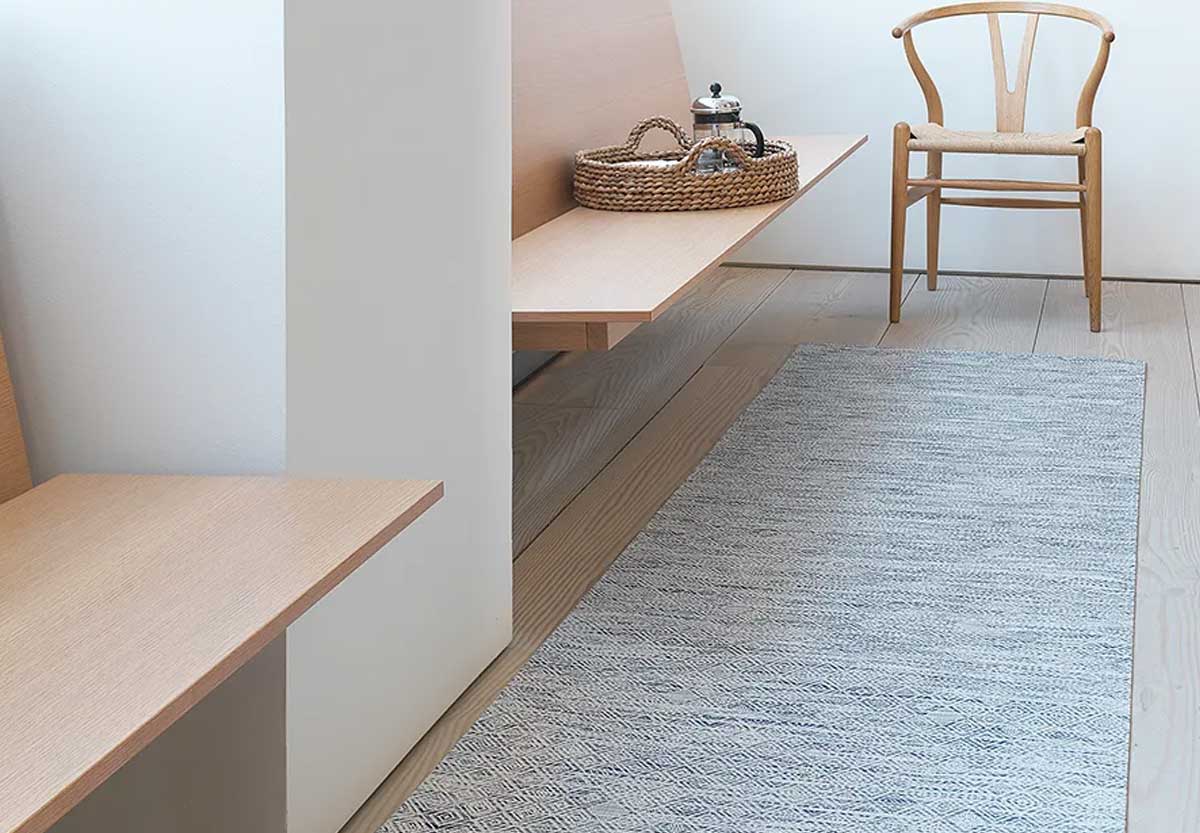 Made from woven PVC fibers, Chilewich floor mats are durable and easy to clean. Vacuum to remove loose dirt or wipe clean with soap, water, and a soft sponge or cloth. Resists stain-causing bacteria, mold, and mildew.