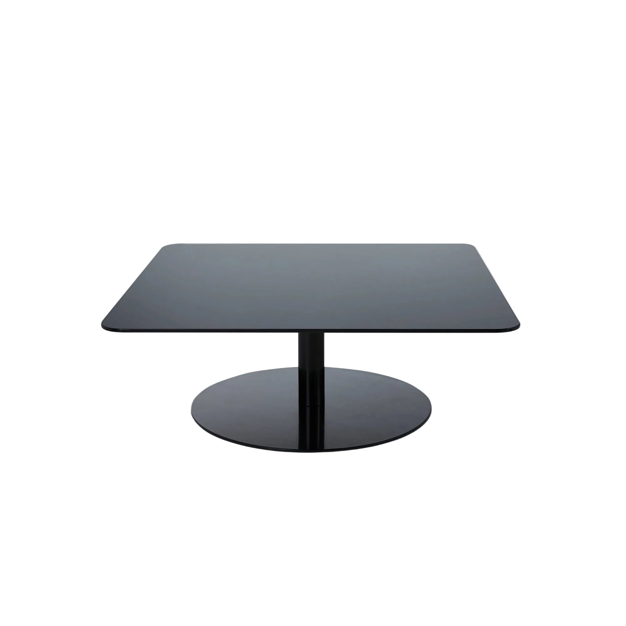 The Flash Square coffee table by Tom Dixon features a polished-steel black base and a mirrored glass top. Its reflective surface creates the illusion of more space while bouncing light across the room. Fully contract compliant.