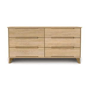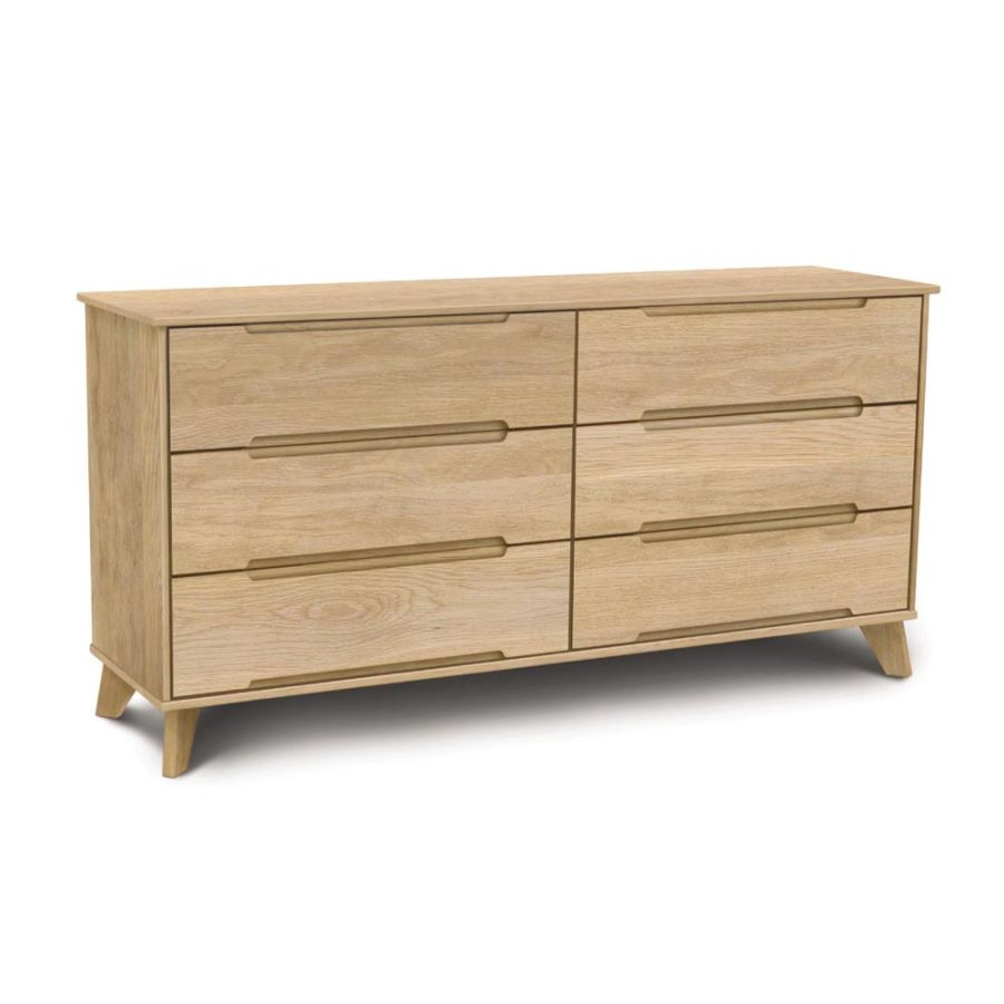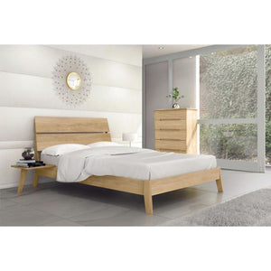The Linn Bedroom is crafted in solid oak hardwood and Made to Order in four finishes. Linn is also available in finger jointed natural walnut and finger joined cherry in two finishes. The finish is GREENGUARD Certified for low chemical emissions. Products selected in Bright Oak display a variegated range of colors from blonde to light brown.