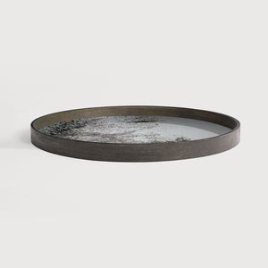 A subdued color palette meets captivating motifs inspired by nature and travel. This mirror tray, part of the Classics collection, experiments with the balance between rich patterns offset with muted tones, revealing the beauty behind the deceivingly ordinary subjects from which inspiration is drawn. Crafted from a heavy aged mirror with a wooden rim, this piece captures the essence of timelessness.