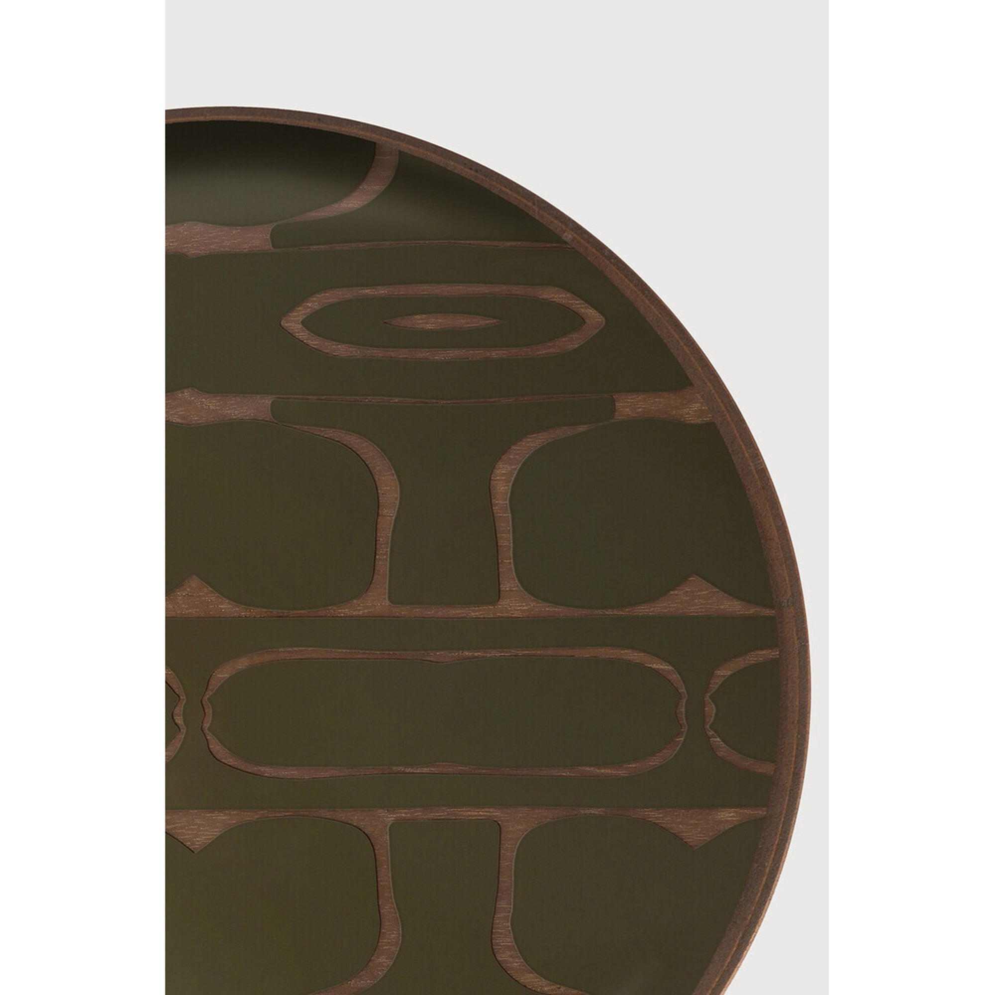 The Second Nature tray collection is inspired by the organic shapes and abstract shadows of nature; stacked rocks, the bark of a tree, the markings on a turtleÆs shell. A harmonious blend of organic inspiration and contemporary design, Second Nature perfectly layers hand-printed glass over the warmth of wood. The artistry of the moss green and metallic ink palette brings a quiet sophistication to its surroundings.