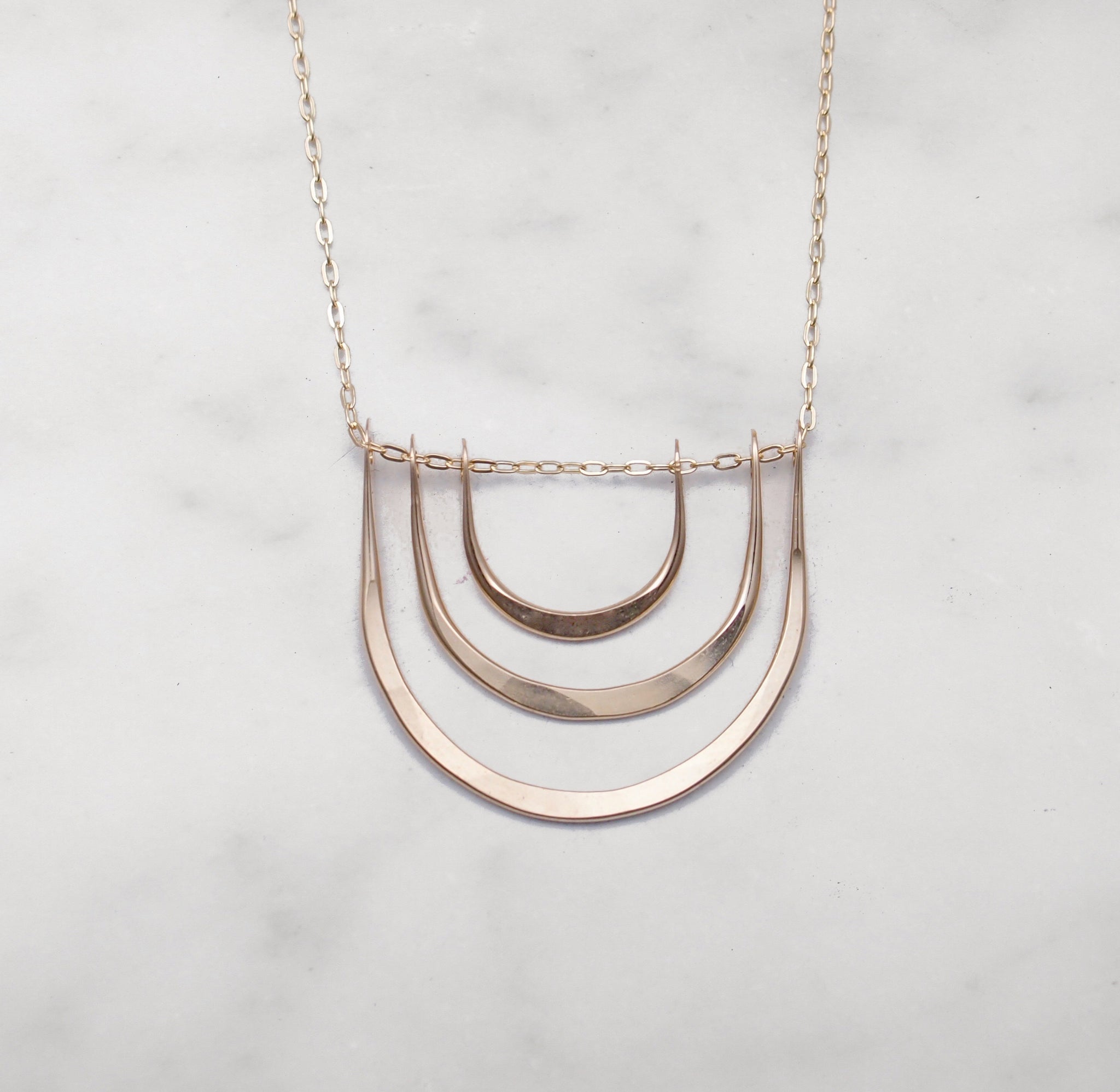 Triple Arc Necklace. The pendant measures 1" x 3/4" on an 18" sterling silver chain