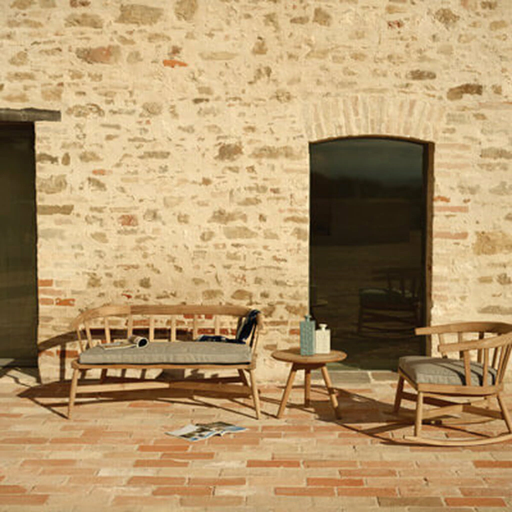 The Gloster Dansk 19.5" Round Side Table pairs with the Dansk Lounge Chair to create a patio grouping reminiscent of mid-century Danish modern designs. The table features a tripod design with vintage minimalist style. All materials are weather-resistant and perfectly suited for outdoors use.