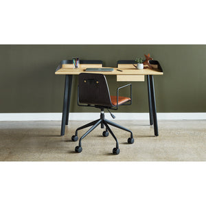 Take a gander at productivity’s new best friend. An innovative take on a minimalist office desk, Gander by GUS* Modern has a neat and tidy nature with petite proportions that make it well-suited to a compact space. The practical design features magnetized wood storage compartments and a handy drawer that provide plenty of hiding spots for your office essentials. With sleek black powder-coated steel legs and a light wood desktop, this do-it-all desk gives any office space a modern makeover. Online exclusive. Not available in stores.