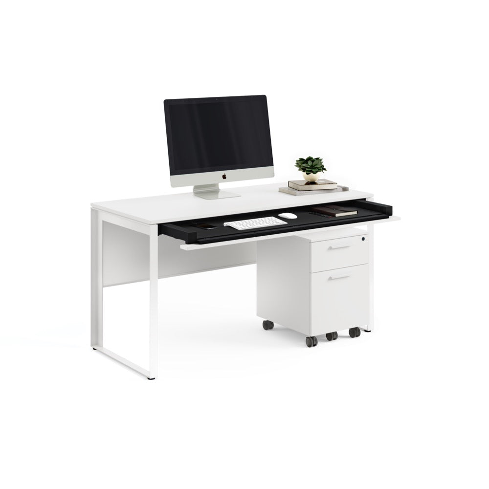 Modern and clean in its design, the Linea Desk features a generously sized wood top, a full-width keyboard/storage drawer, and intelligent wire management to keep things organized