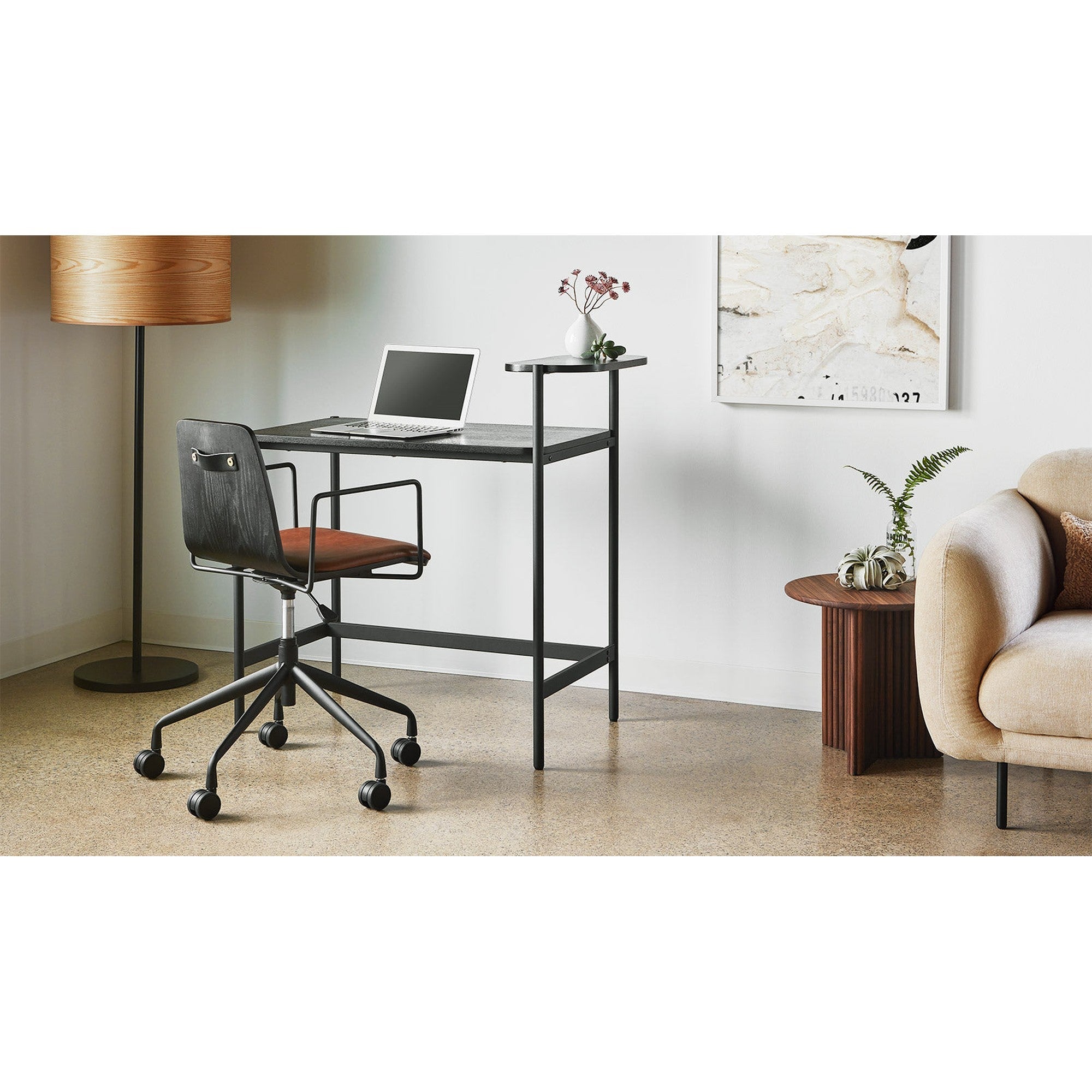GUS* Modern's Loft Sit-Stand Desk is a big-scale shift with a small-scale footprint. A lesson in Scandinavian-inspired minimalism, this desk is frills-free, yet highly functional. With options to find your ideal working posture, you can relax at ease while you enjoy your morning coffee or stand at attention for virtual meetings. Switch up your point of view whenever you need with the reversible standing top configuration that can be moved to either side of the desk. No more fidgeting, no more strain. Simply a well-made desk. Online exclusive. Not available in stores.