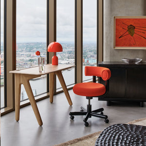 The Slab desk, by Tom Dixon part of the Slab collection, is an ergonomic and aesthetic desk. Made from solid oak and it features a cable management hole and a groove for stationery. Team with the FAT Work Chair and POSE Task Light for the ultimate home office set up.