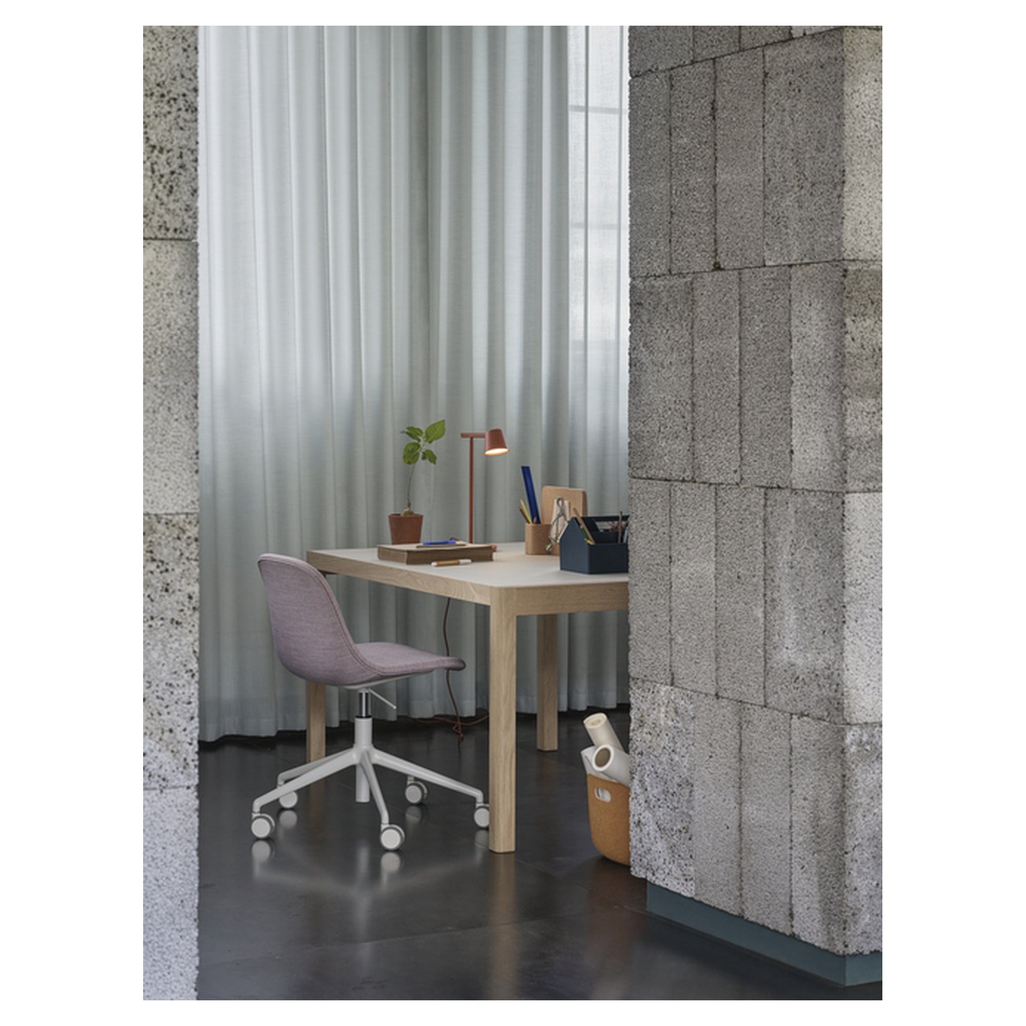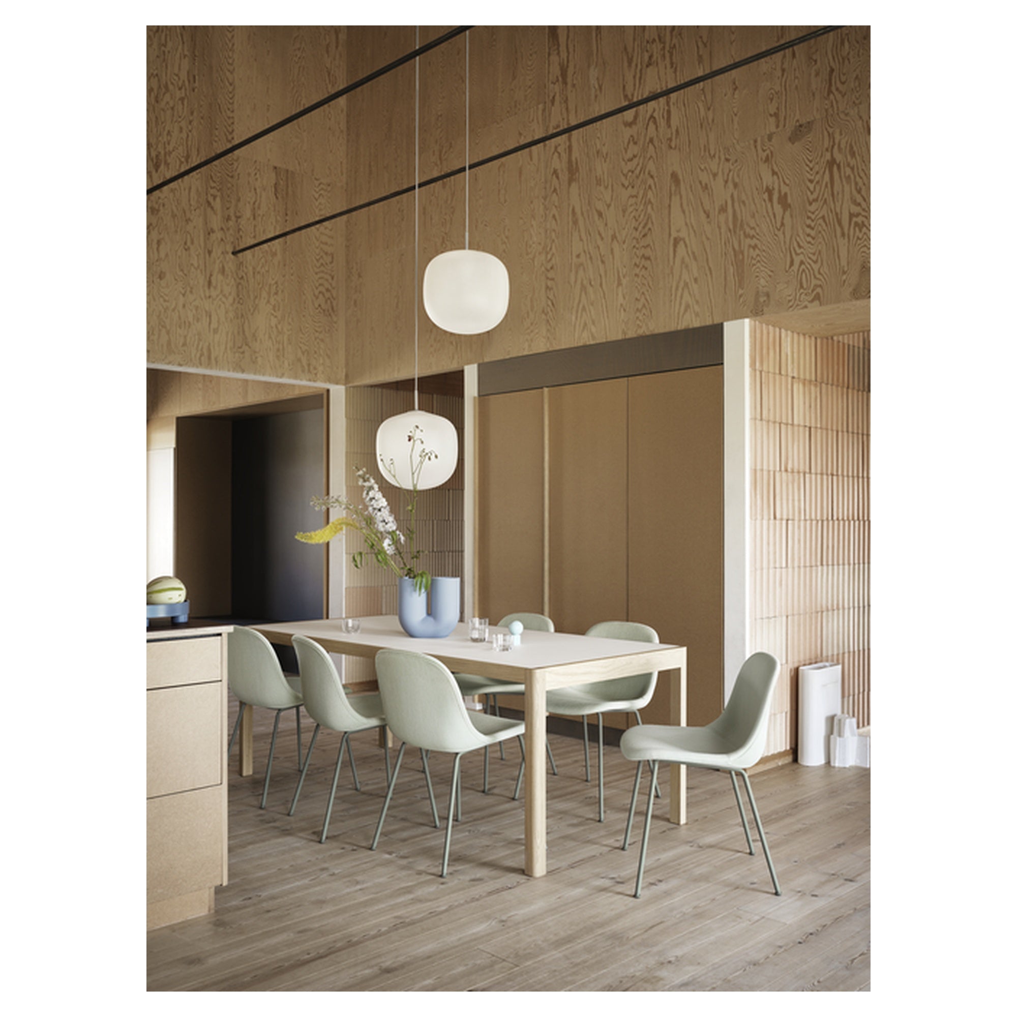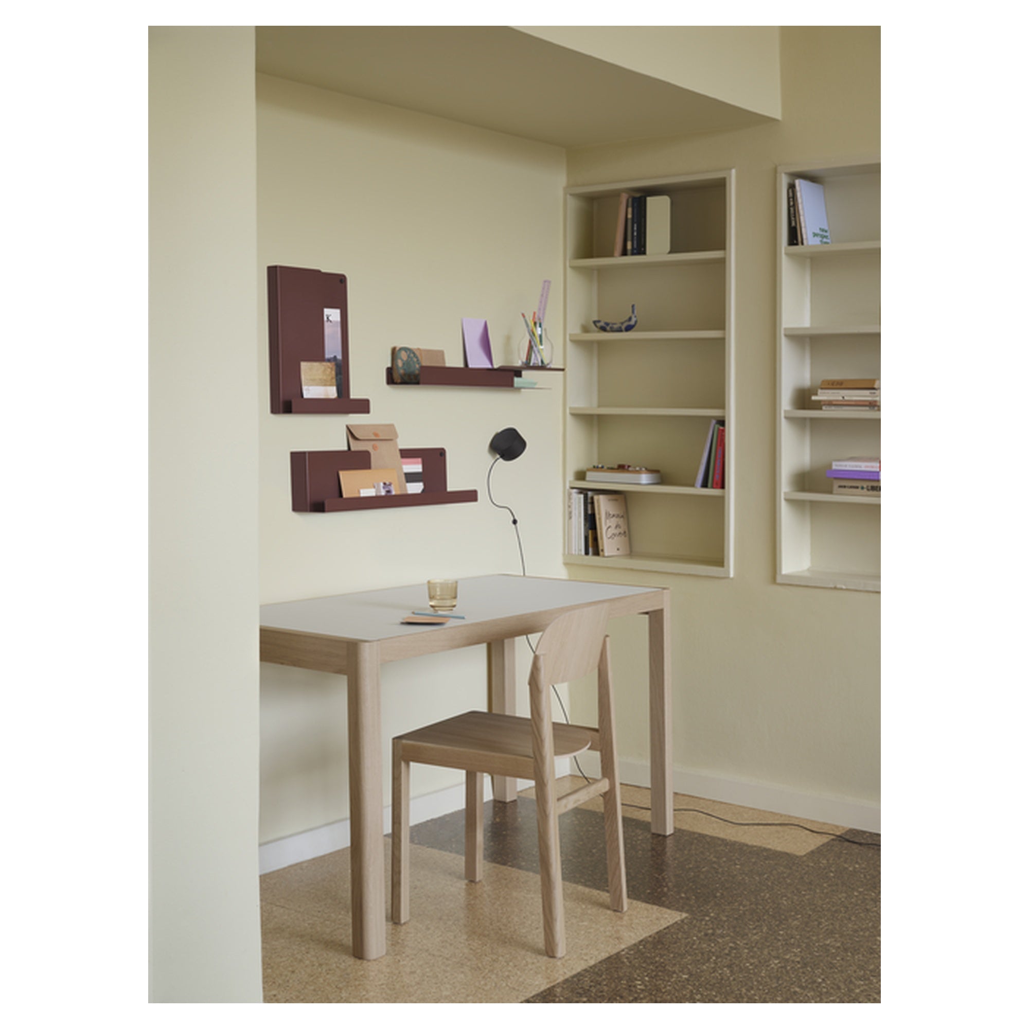 The Workshop Table joins together the ideals of Scandinavian craftsmanship and subtle detailing for a deliberately simple and archetypal expression. With its tabletop in either oak veneer or linoleum harmoniously carving itself into the solid oak frame, the Workshop Table brings a refined and understated appearance to any setting.