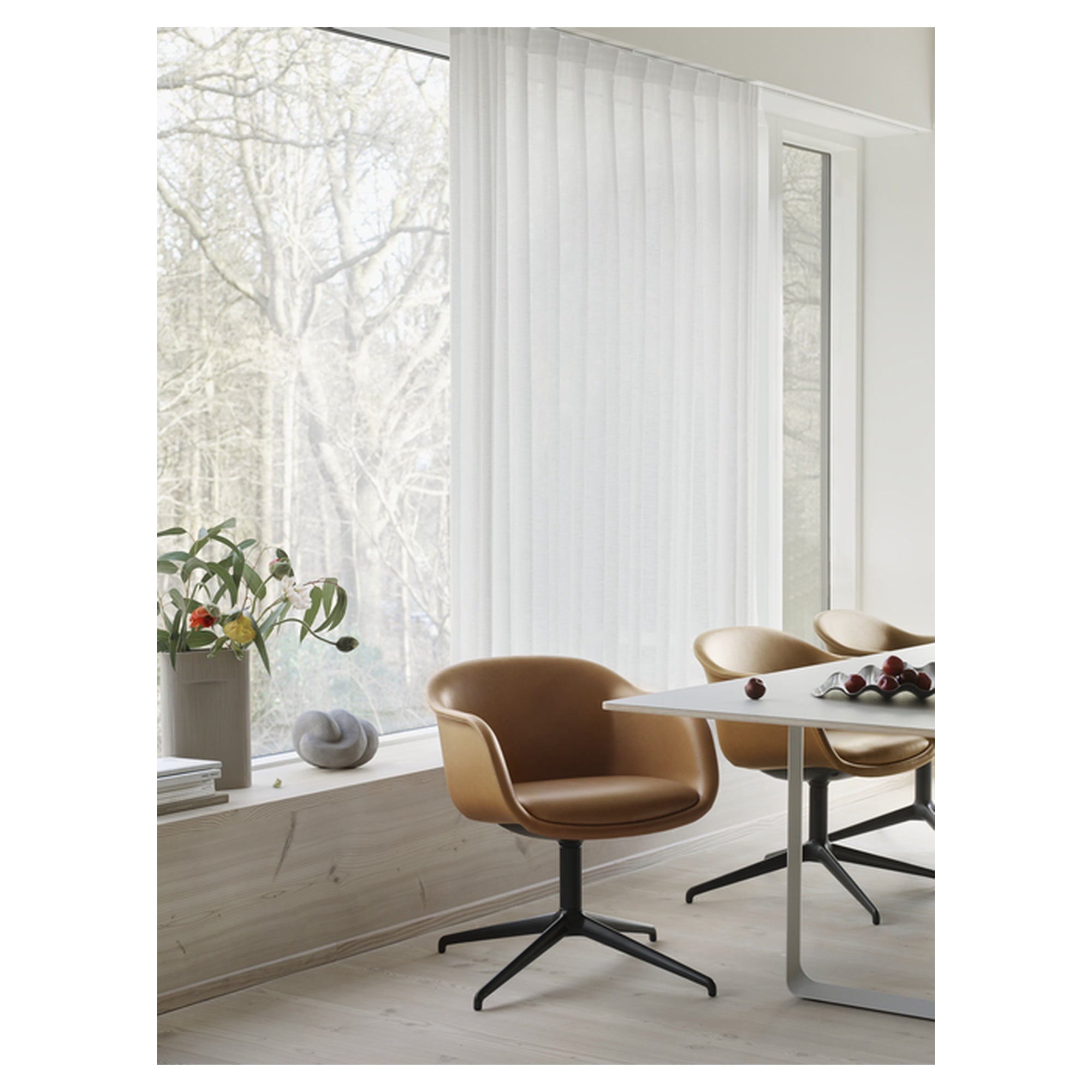 A sculptural yet distinctly ergonomic seat makes the Fiber Conference Armchair ideal anywhere we spend an extended time seated. Its interior shell is made using 100% recycled plastic, while its spacious seat and embracing curves are fully upholstered with a soft fixed cushion, providing maximum comfort in public spaces and the home alike.