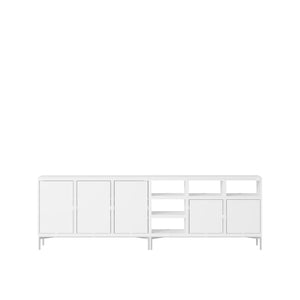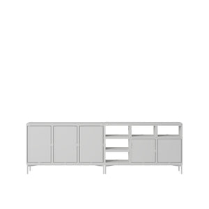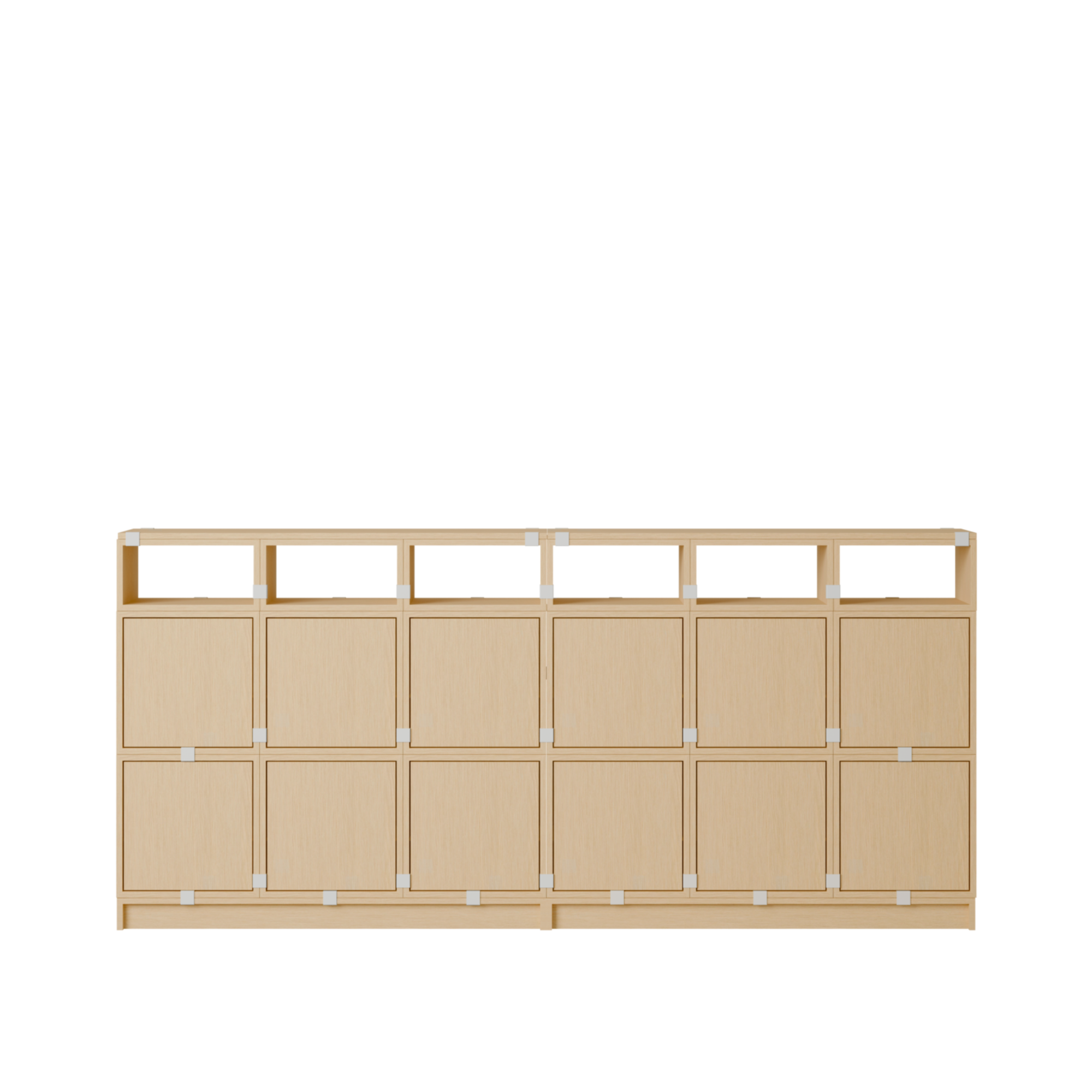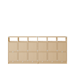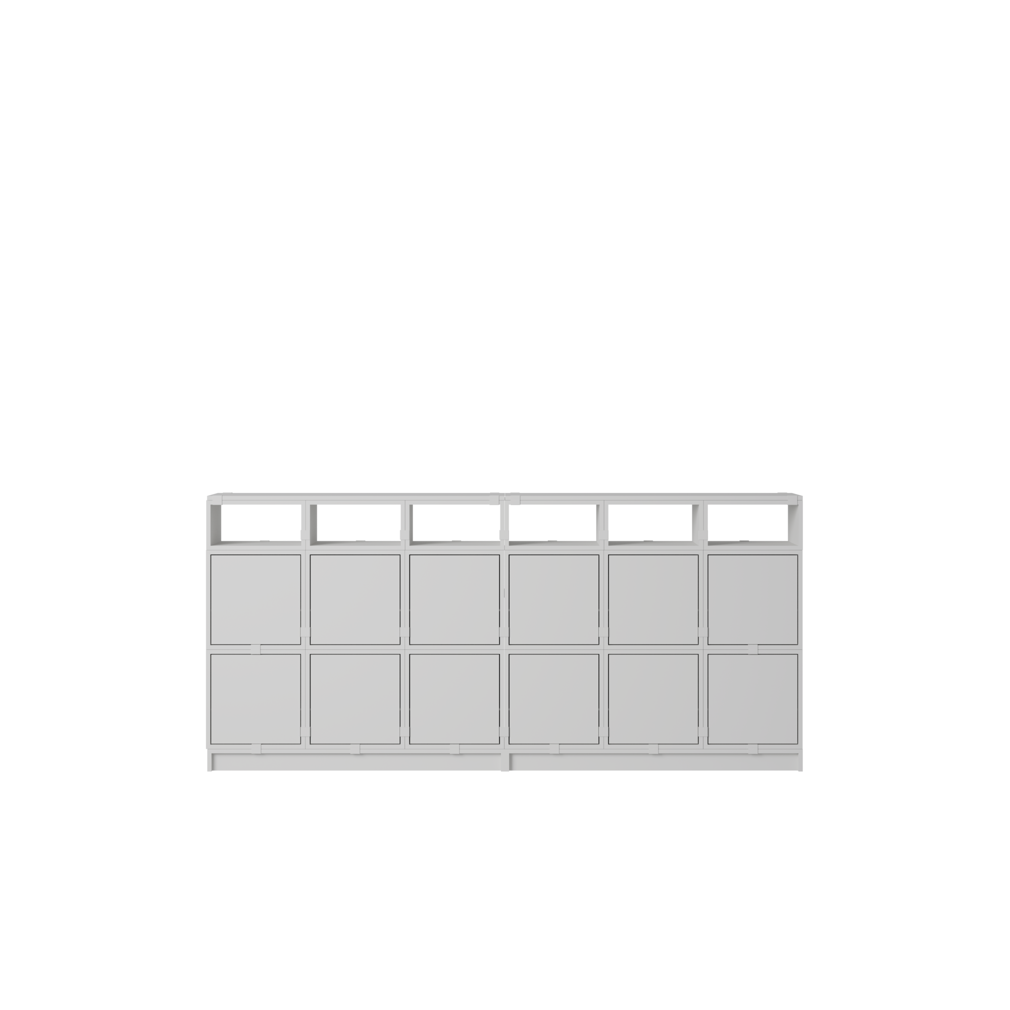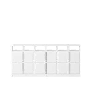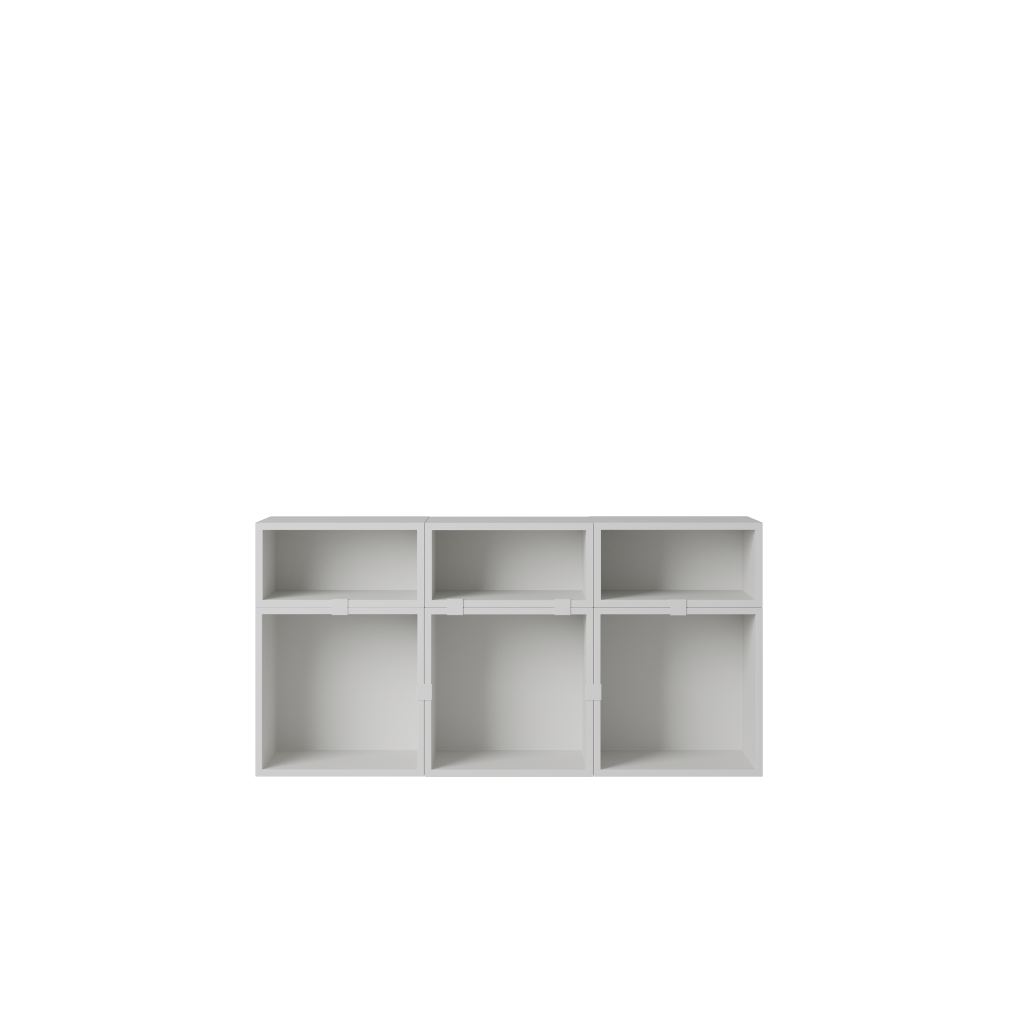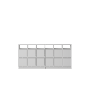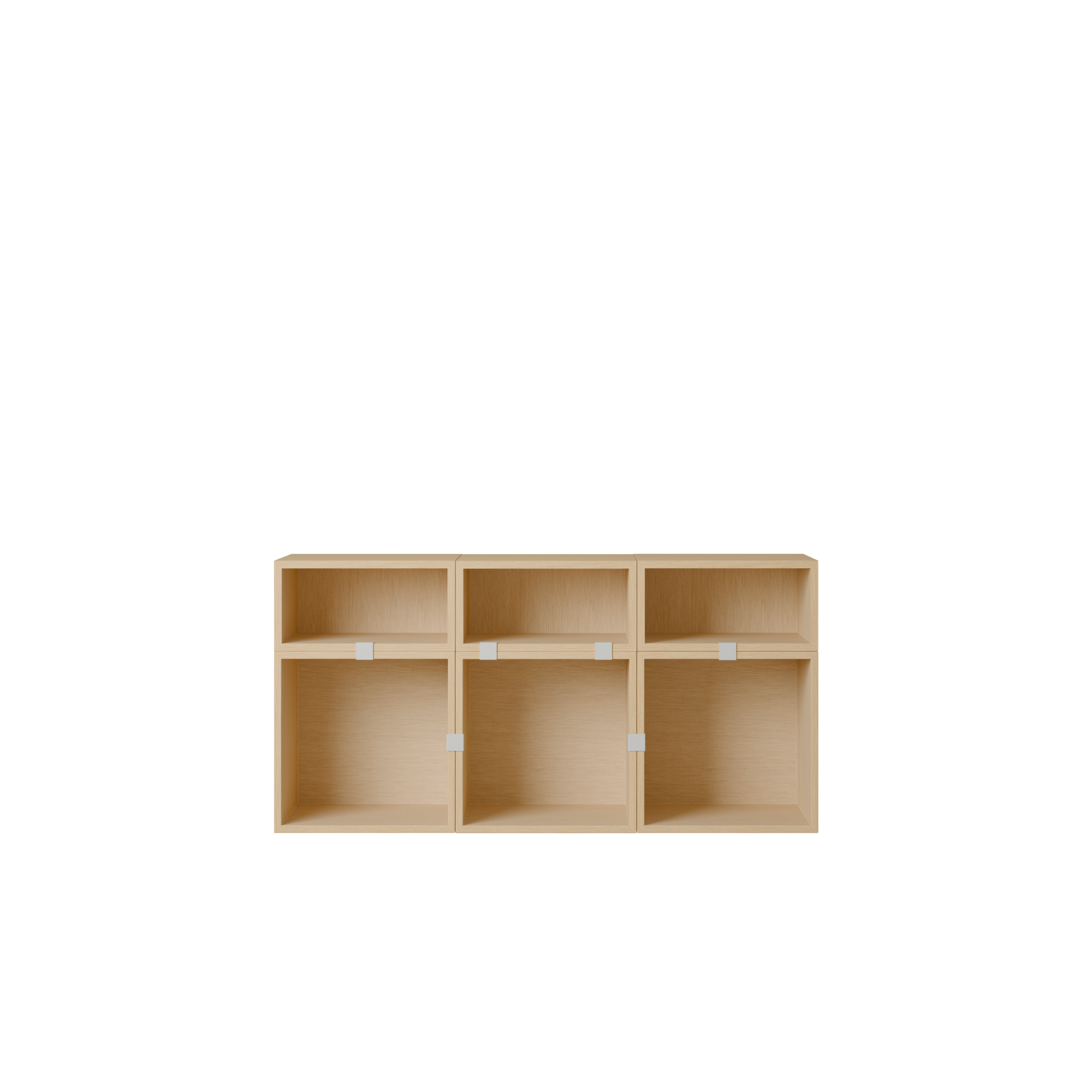 Being both versatile and functional, the Stacked Storage System can be arranged and rearranged for the exact aesthetic and functional needs of any space. Seen here is a selection of predesigned Sideboard configurations that bring modern storage to any home, workplace or hospitality setting. All modules with backboard can be mounted directly onto the wall.