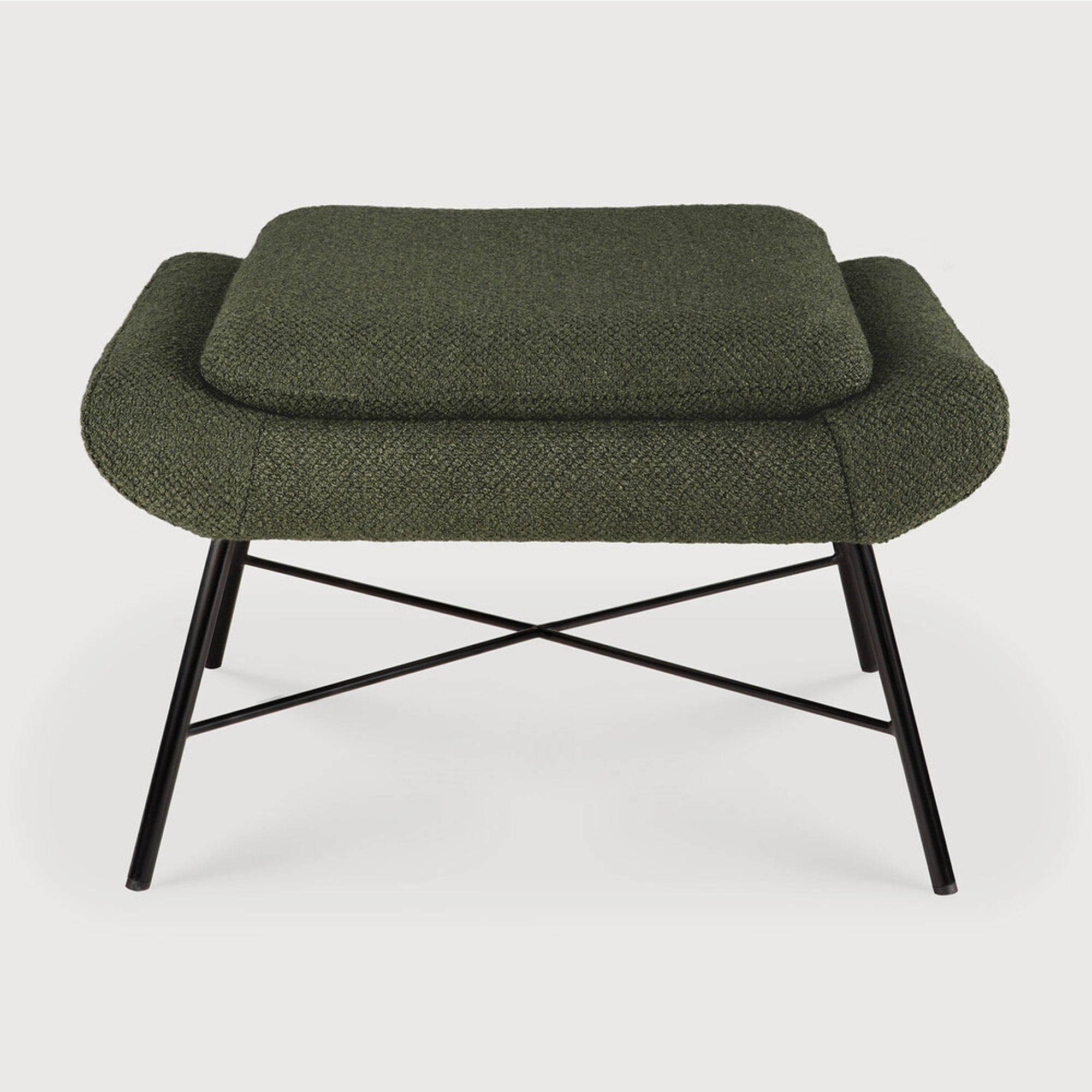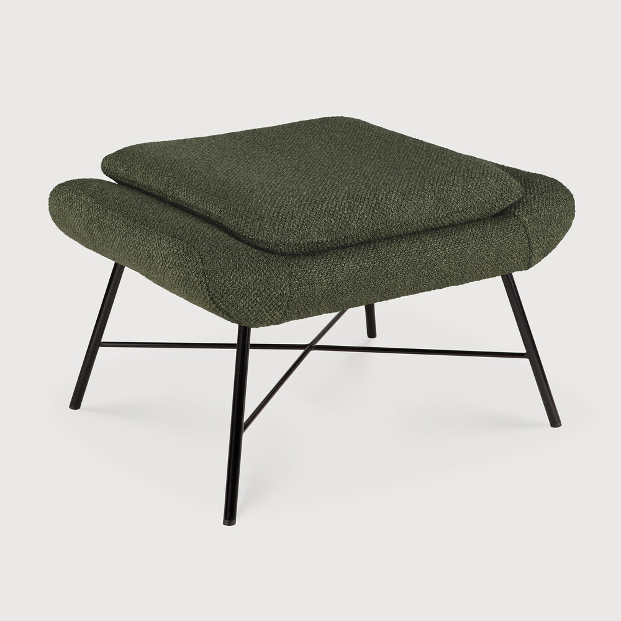 Drawing inspiration from the captivating aesthetics of the 1950s, this footstool collection exudes an irresistible vintage charm. Its design seamlessly blends the lightness of a sturdy metal foot base with the luxurious comfort of premium upholstery, making it a timeless and sophisticated addition to any living space. The meticulous craftsmanship ensures both enduring quality and a refined presence.
