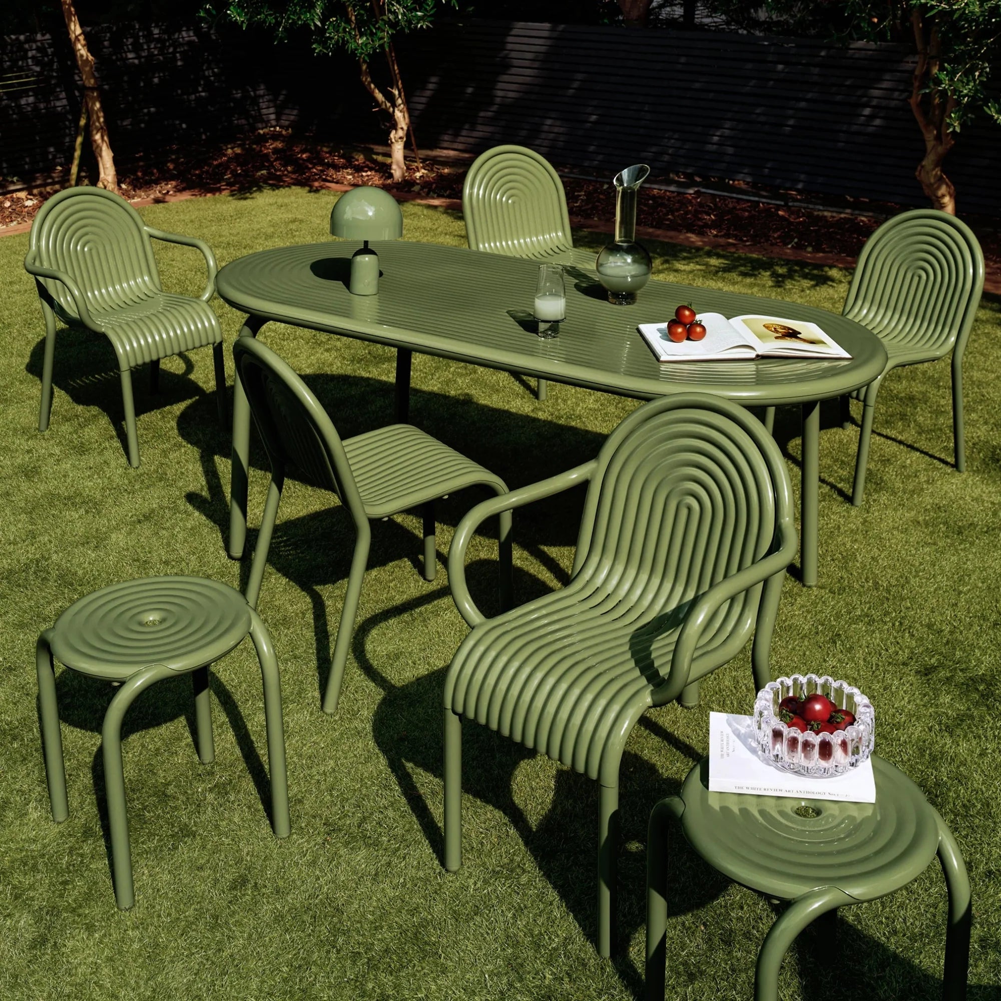 Introducing the Groove Arm Chair in Putty, part of Tom Dixon's first outdoor collection. The Groove Arm Chair features distinctive art deco style raised ridges and is made from premium aluminium. This outdoor Arm Chair utilises cutting-edge manufacturing techniques for superior durability and features a high-quality powder-coated finish, ensuring suitability for outdoor use and is both solvent and VOC-free.
