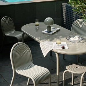 Product Description: Discover the Groove Side Chair in Moss, part of Tom Dixon's first outdoor collection. Featuring distinctive art deco-style raised ridges, this chair is crafted from premium aluminium using advanced manufacturing techniques for exceptional durability. Its high-quality powder-coated finish is solvent and VOC-free, making it ideal for outdoor use. Available in elegant Moss and Putty shades.