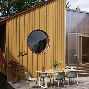 The 70/70 Outdoor Table is designed with a simple expression, paired with subtle, understated details that reveal themselves upon closer inspection. Available with FSC™-certified (FSC-C028824) Sapele Mahogany, a durable hardwood resistant to the wear and tear of being outdoors. With time, the wood will lose some of its reddish glow, giving way to a grey-tone patina. Treat with wood oil to enhance some of natural red of the wood.
