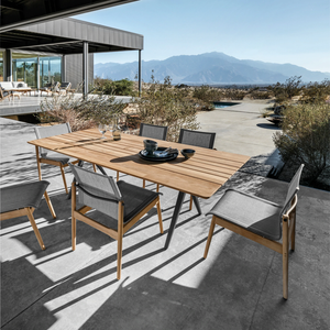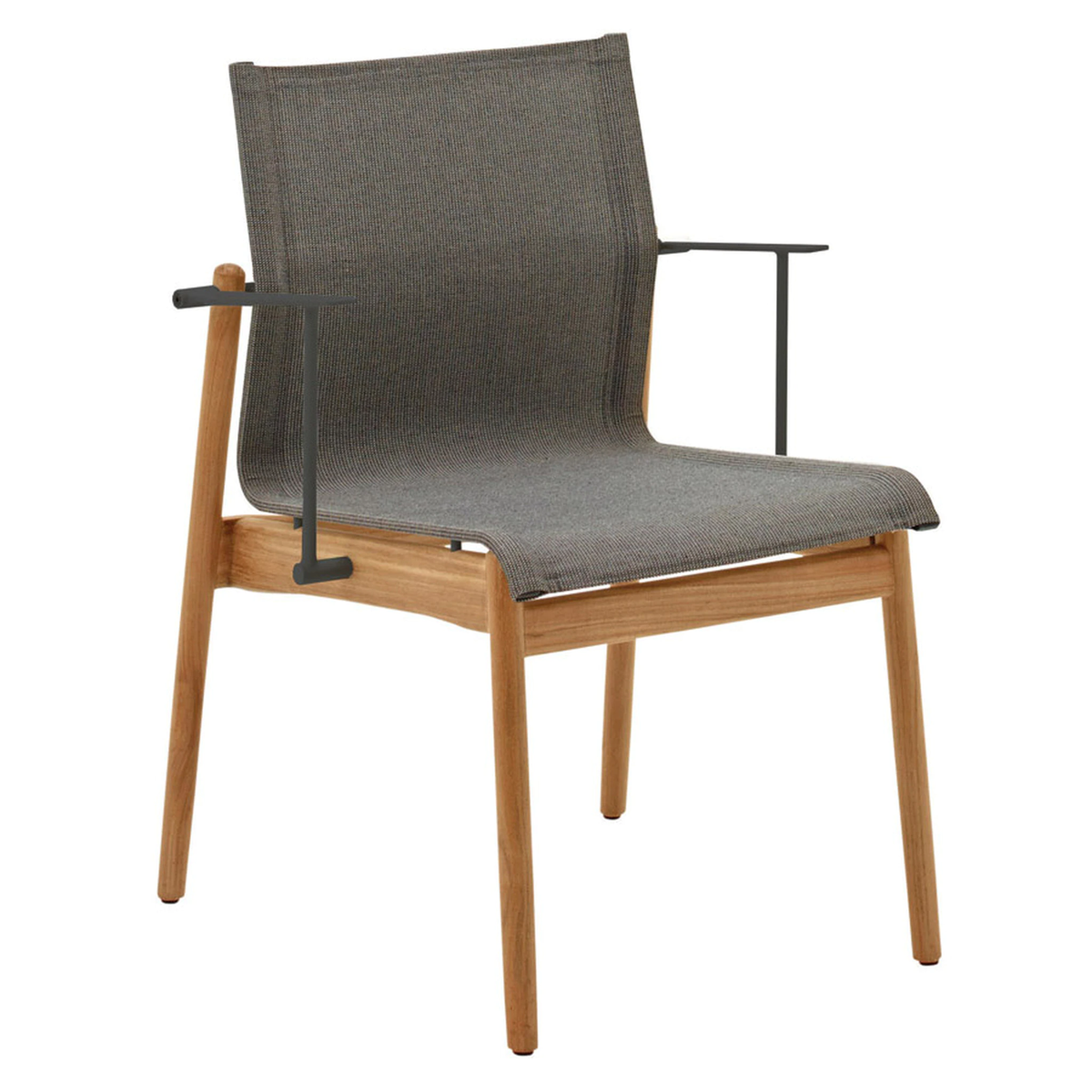 The attractive Gloster Sway Stacking Armchair offers a gracefully arched back that gives the taut sling seat its sway. This comfortable chair is constructed of solid hardwood teak with powder-coated aluminum sharp angular arms and chair details that are available in Meteor or White. The all-weather sling seat comes in Granite (with Meteor arms), Seagull (with White arms), and Anthracite (with Meteor arms). Stacks for easy storage.