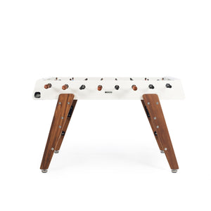 The RS3 Wood is an indoor and outdoor Foosball table, so you can have it both in the dining room or in the game room, as well as on the terrace or in the garden. Each color (white, black, green and light grey-inox) comes with standard team kits. But the RS3 Wood is also a customizable Foosball table and you can play with your favorite teams.