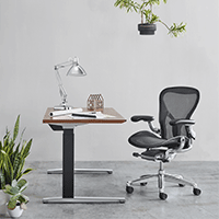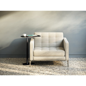 Adjusting effortlessly on a smooth pneumatic cylinder, a simple push or pull on the Serif tabletop glides it to the perfect height. The table's slim and sturdy base slides easily under a sofa or chair, always keeping the versatile surface close at hand for work or play.