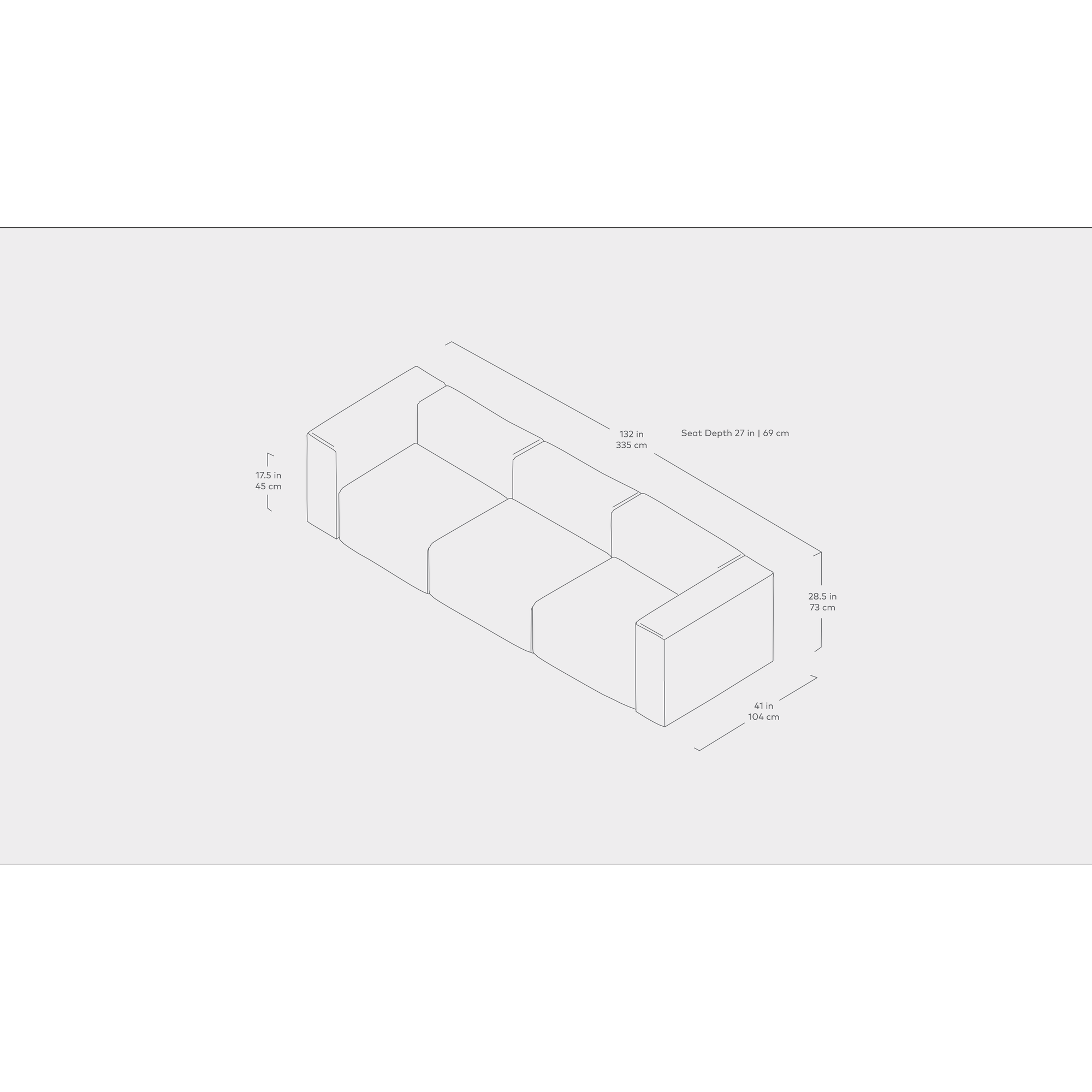132 W × 41 D × 28.5 H in; Seat height: 17.5 in; Seat depth: 27 in