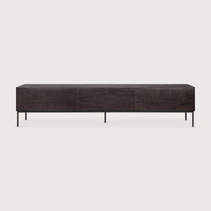 Discover a truly soulful piece with our TV cupboard. Crafted from solid teak, its distinctive character comes alive through every hand-carved line. This meticulous artistry ensures that each piece is genuinely unique, with small, inherent imperfections that tell a story and enhance its individual charm. The result is a surface that boasts its own rhythm and dynamic, ensuring no two pieces are exactly alike.