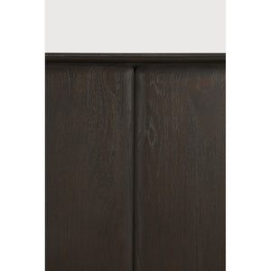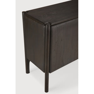 This striking and unique sideboard offers practical storage solutions, making it a versatile addition that effortlessly complements a wide array of interior spaces. Crafted from robust teak, its inherent durability and timeless appeal are undeniable. With its thoughtful design and exceptional build, it is designed to serve as a distinguished focal point in any room.