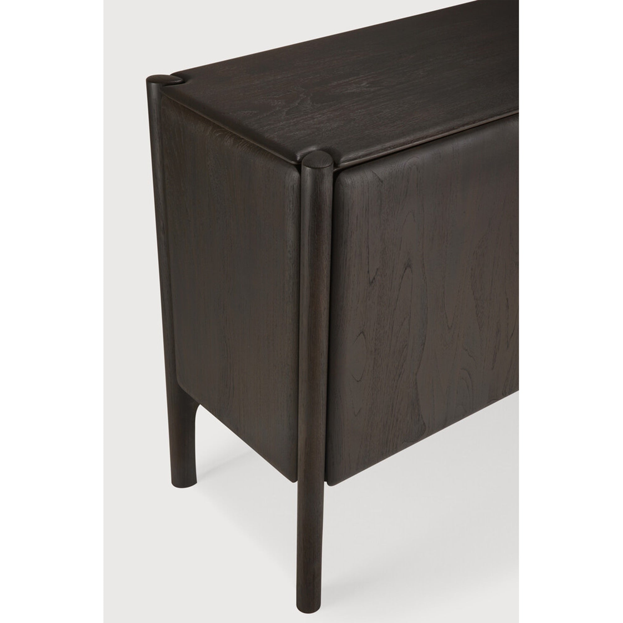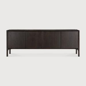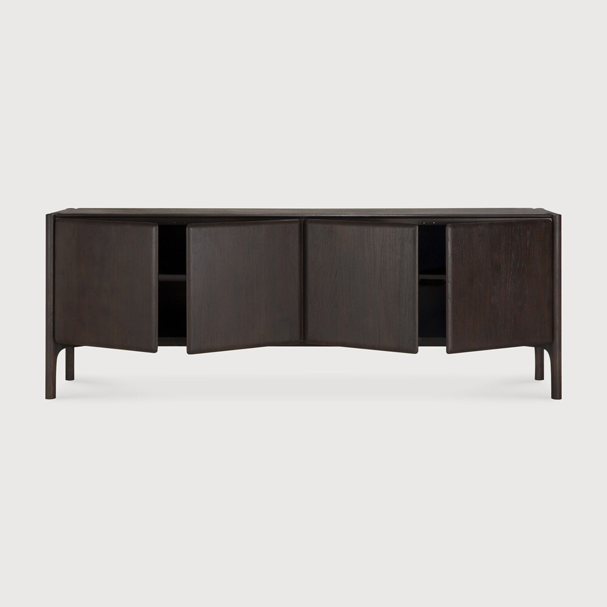 The PI collection celebrates nature's inherent design, preserving the organic strength, graceful curves, and authentic lines found in the natural world. This stunning sideboard features a sleek and stylish aesthetic, characterized by its distinctive polished imperfect finish that reveals interesting, unique shapes. Each piece is meticulously finished by hand, a process that ensures the individual character and beauty of the wood is honored and brought to the forefront.