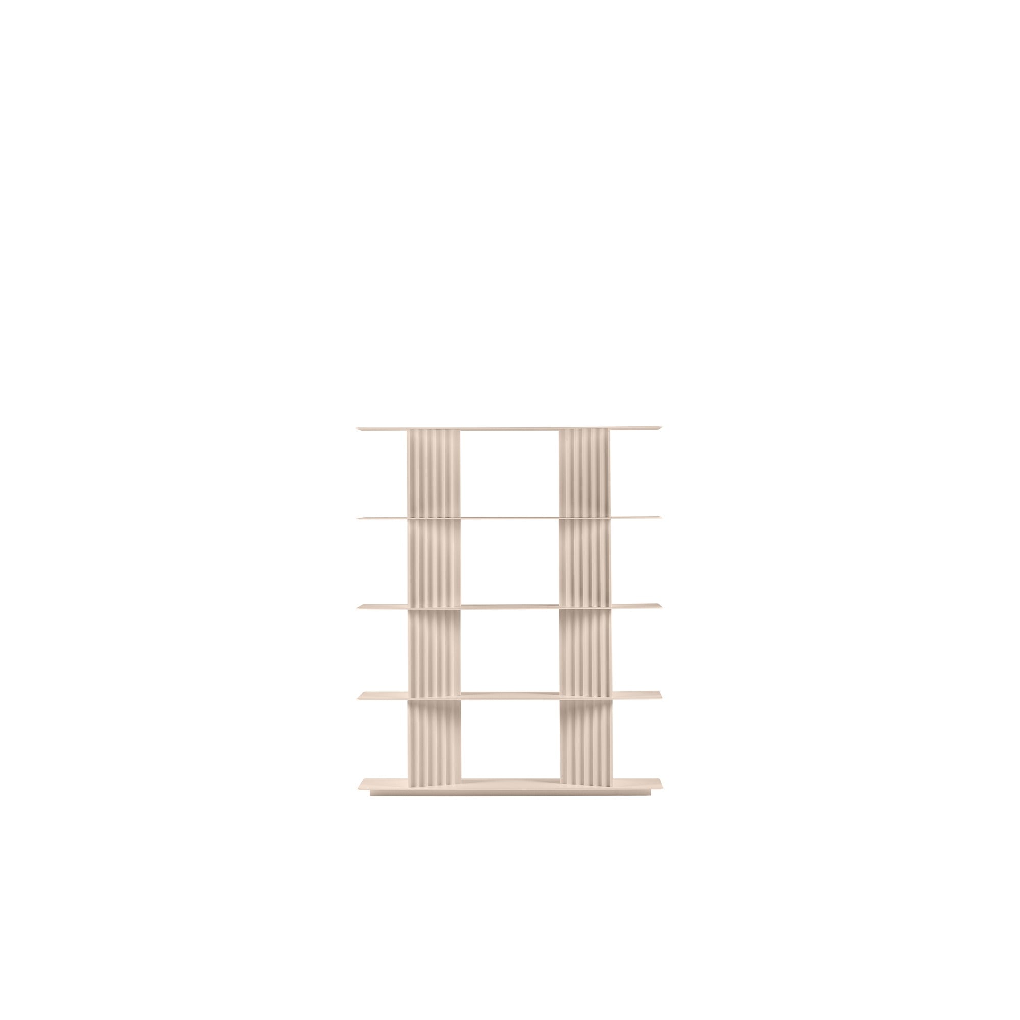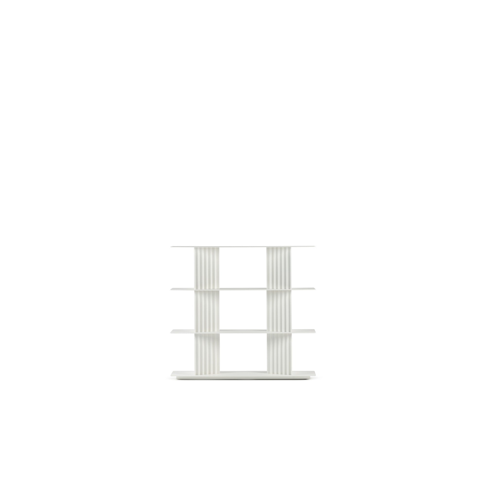 Plec Shelving is an storage system that preserves the essence of the Plec collection. With a truly sculptural character and distinct architectural shapes, its perfect folds bring beauty to the space through their symmetry, transforming the basic function of a shelf into pure art, even filling the emptiness with meaning.