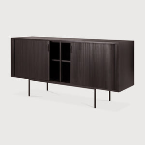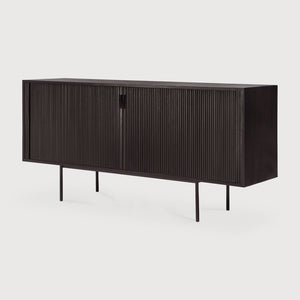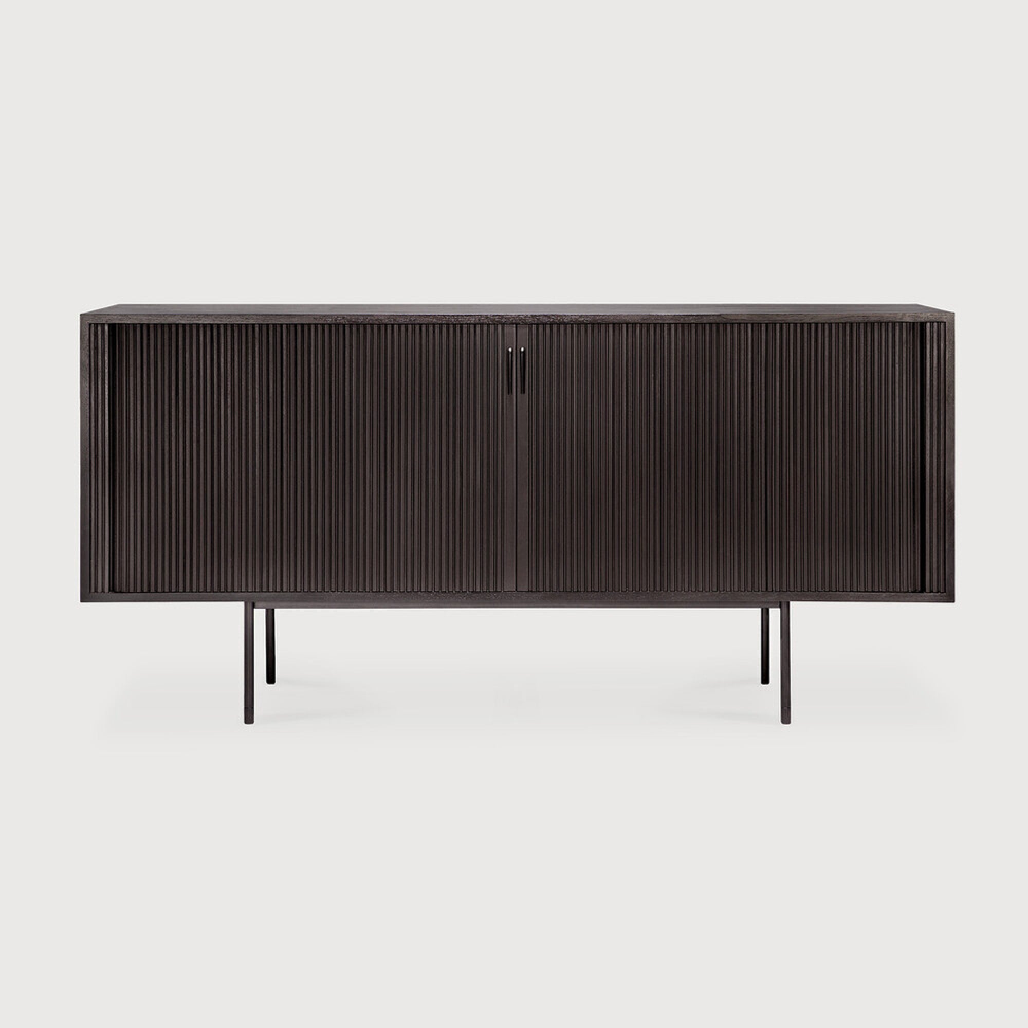 The Roller Max sideboard masterfully blends functional storage with an undeniably captivating design, making it a standout piece in any setting. Crafted from durable teak, this elegant item immediately draws the eye to its distinctive stacked wood-stick pattern, a hallmark of the collection. Its sophisticated aesthetic ensures it transitions seamlessly between various interior styles, providing both practical utility and a striking visual anchor.