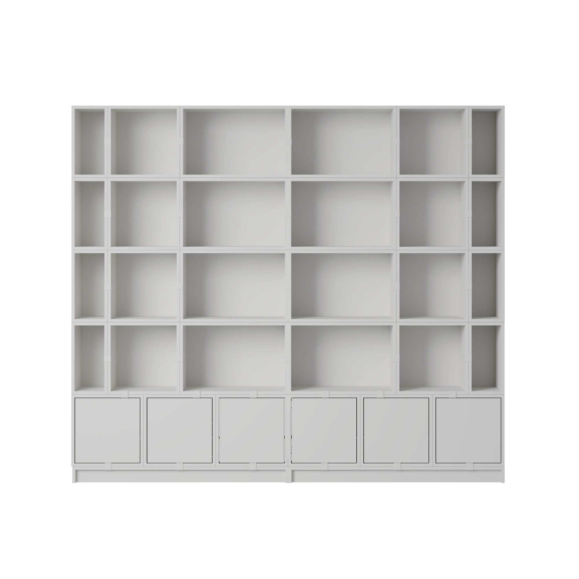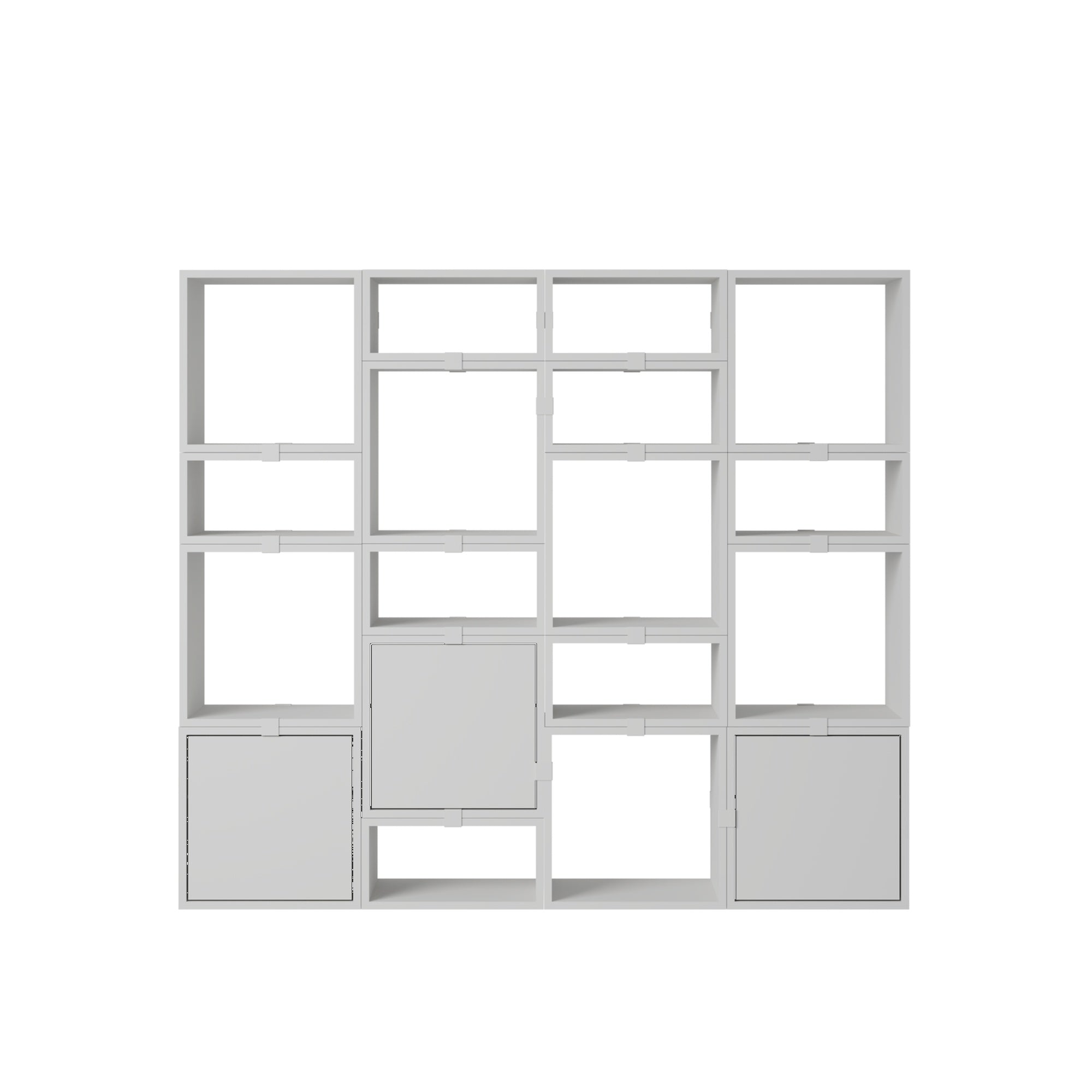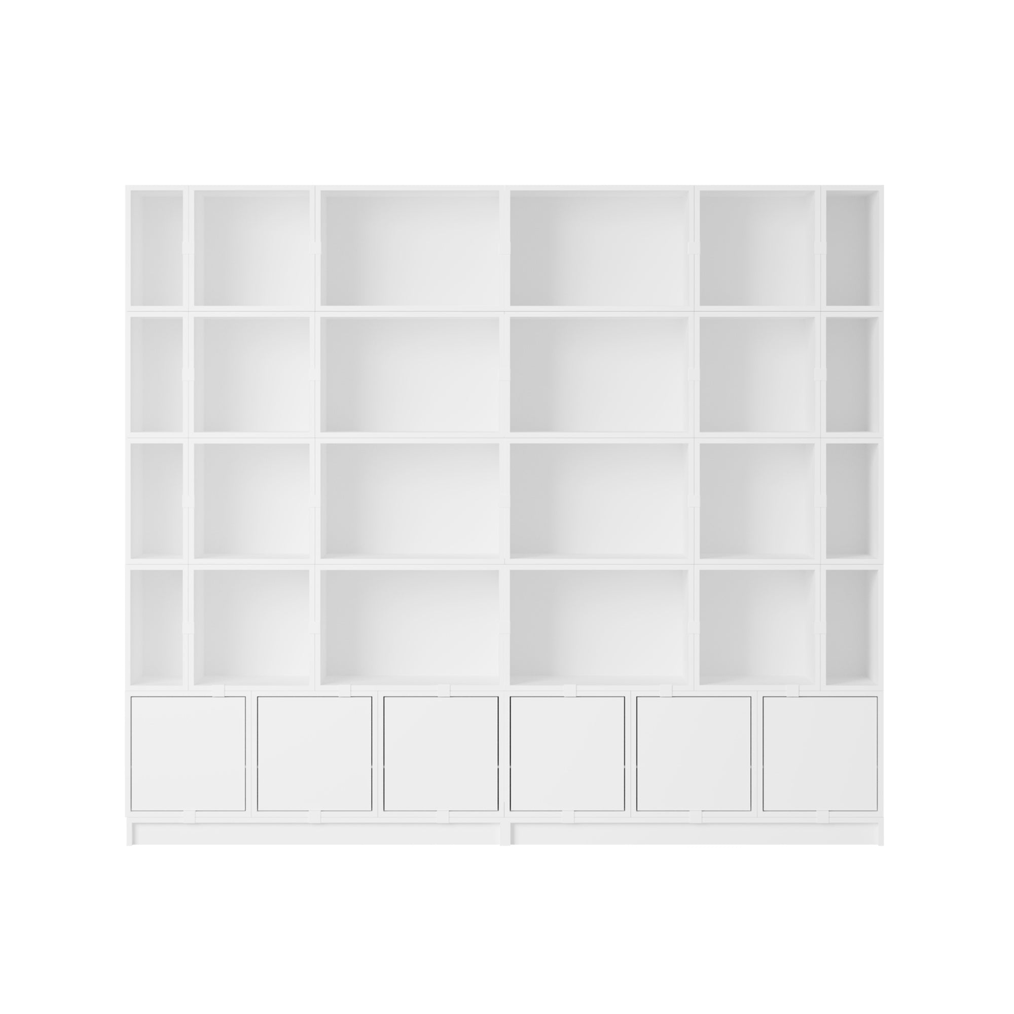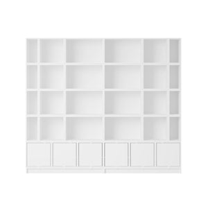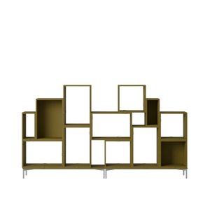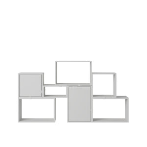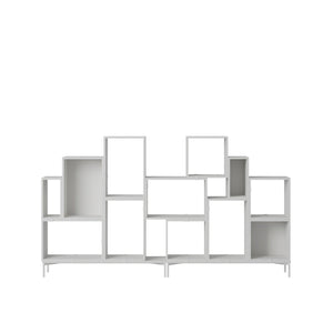 Being both versatile and functional, the Stacked Storage System can be arranged and rearranged for the exact aesthetic and functional needs of any space. Seen here is a selection of predesigned Bookcase configurations that bring modern storage to any home, workplace or hospitality setting. All modules with backboard can be mounted directly onto the wall.