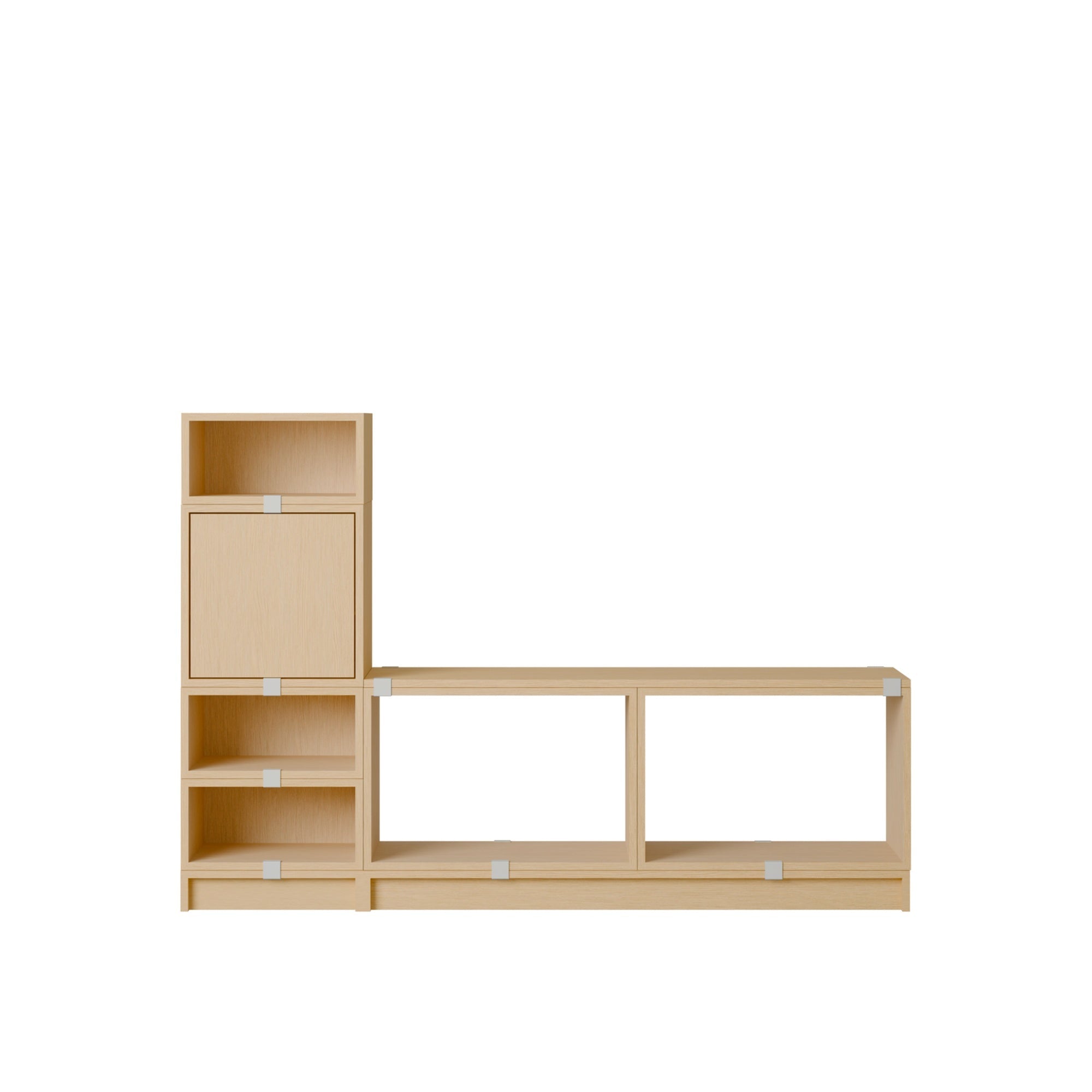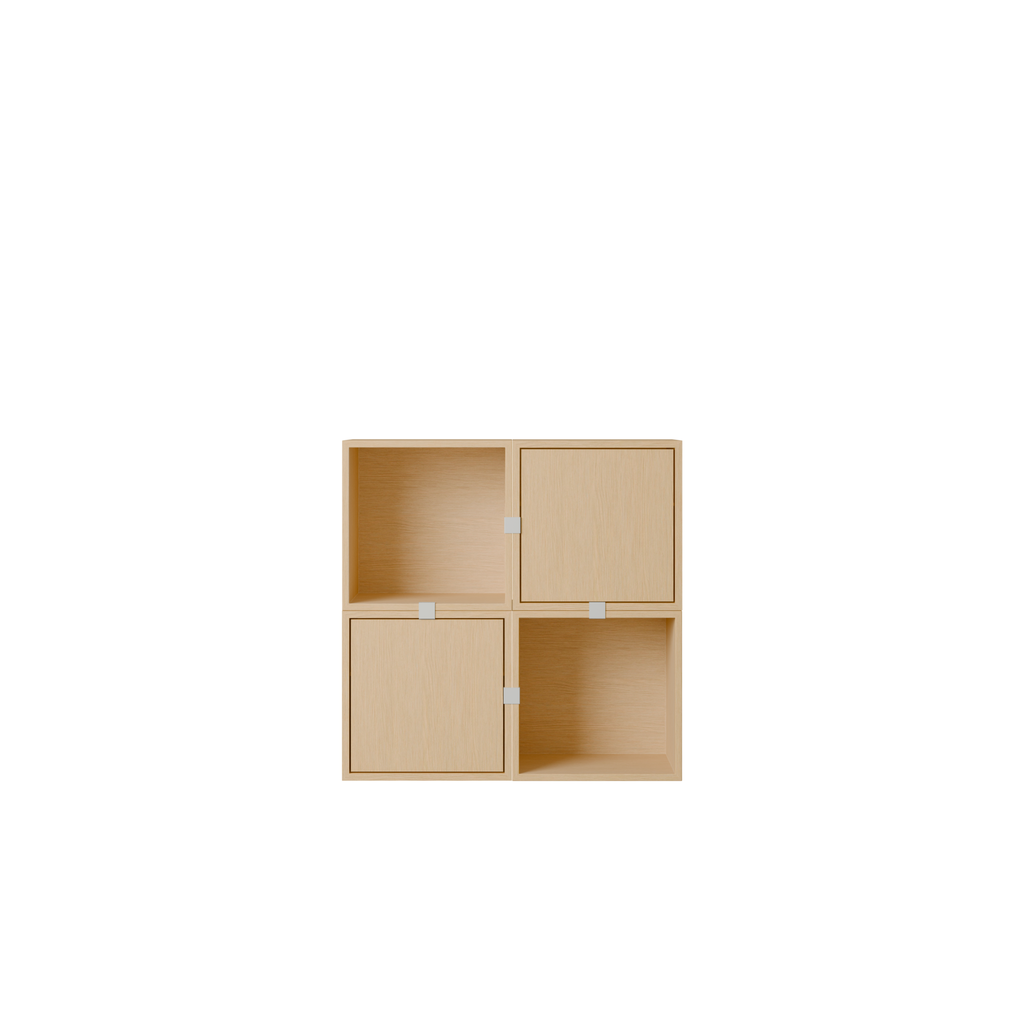 Being both versatile and functional, the Stacked Storage System can be arranged and rearranged for the exact aesthetic and functional needs of any space. Seen here is a predesigned Hallway Storage configuration that brings modern storage to any home, workplace or hospitality setting. All modules with backboard can be mounted directly onto the wall.