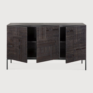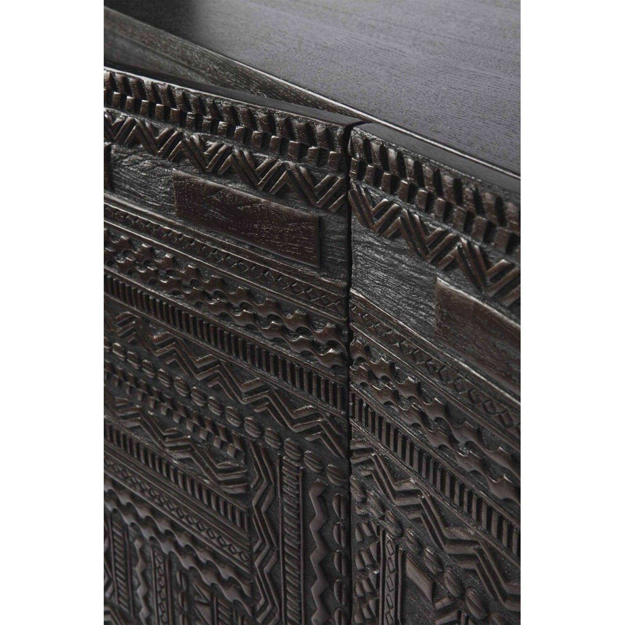 The Tabwa sideboard stands as a timeless centerpiece, boasting a minimalistic silhouette infused with a uniquely distinct character. Each piece of this contemporary wooden furniture is transformed into a work of art, with patterns meticulously carved by skilled artisans. The collection draws its name and inspiration from the Tabwa culture of Central Africa, renowned for their fondness for intricate linear geometric motifs, which are beautifully echoed in every detail.
