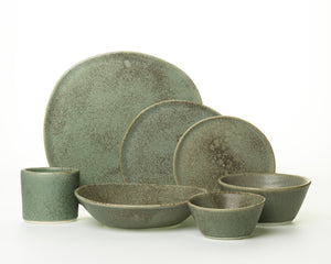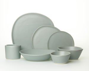 Everything you need to set your table for the holidays and gatherings. This comprehensive setting includes the organic Ripple Dinner Plate, versatile Ripple Salad Plate, relaxed Ripple Side Plate, low-slung Ripple Large Pasta Bowl, compact Chemist Cup, medium Breakfast Bowl, and perfectly-sized Dessert Bowl (ideal for ice cream, berries, or salad dressing for two). This versatile setting is based on traditional formal settings, and we can assure you that you will lack nothing when planning the perfect meal. Not sure where to start, but want Haand to be the only pottery in your cabinets? This is the setting for you!