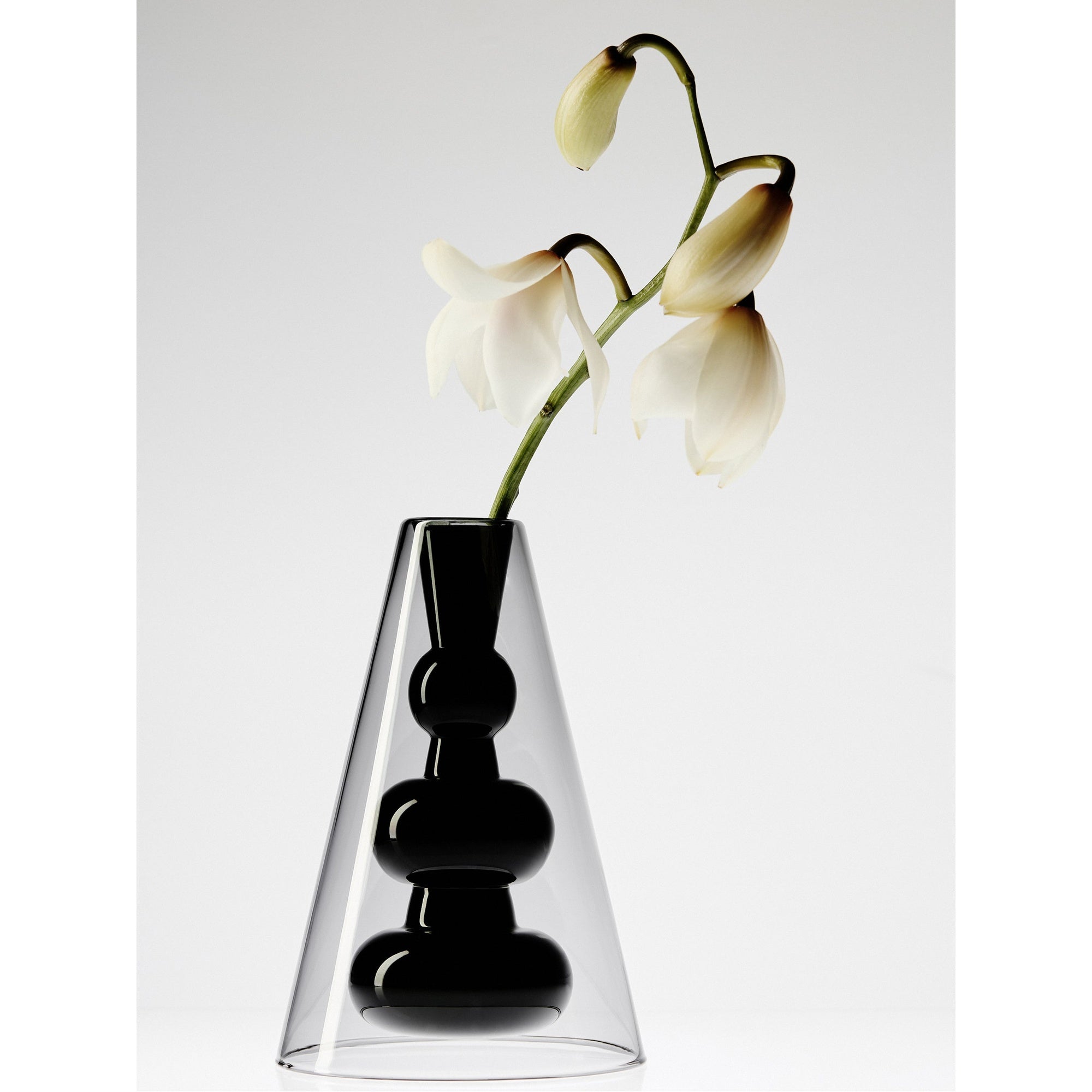 The Bump cone vase by Tom Dixon is part of a minimalist borosilicate vessel family, handmade with subtle black and grey hues. Bump offers an elegant approach to the alchemical art of floral arrangements, perfect for both everyday use and special occasions.