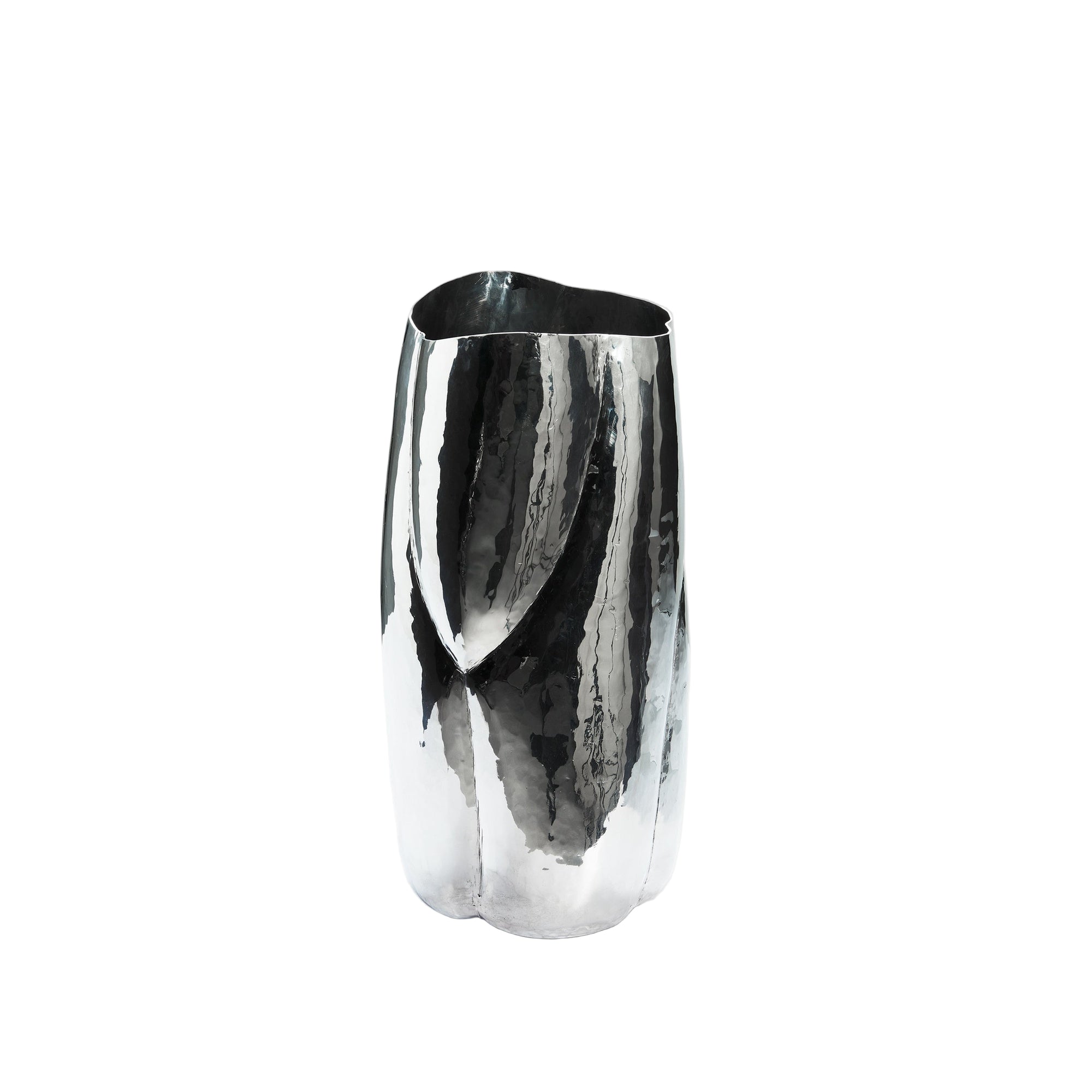 Cloud by Tom Dixon is a family of sculptural pieces made of highly reflective polished aluminium. The collection includes a platter, bowl, short and tall vessel, all of which are handmade by skilled artisans in India. Each Cloud vessel is impactful, and water-tight so can be used for floral arrangements, and also dry-food safe.