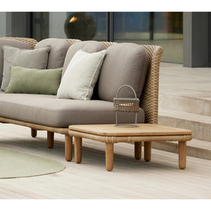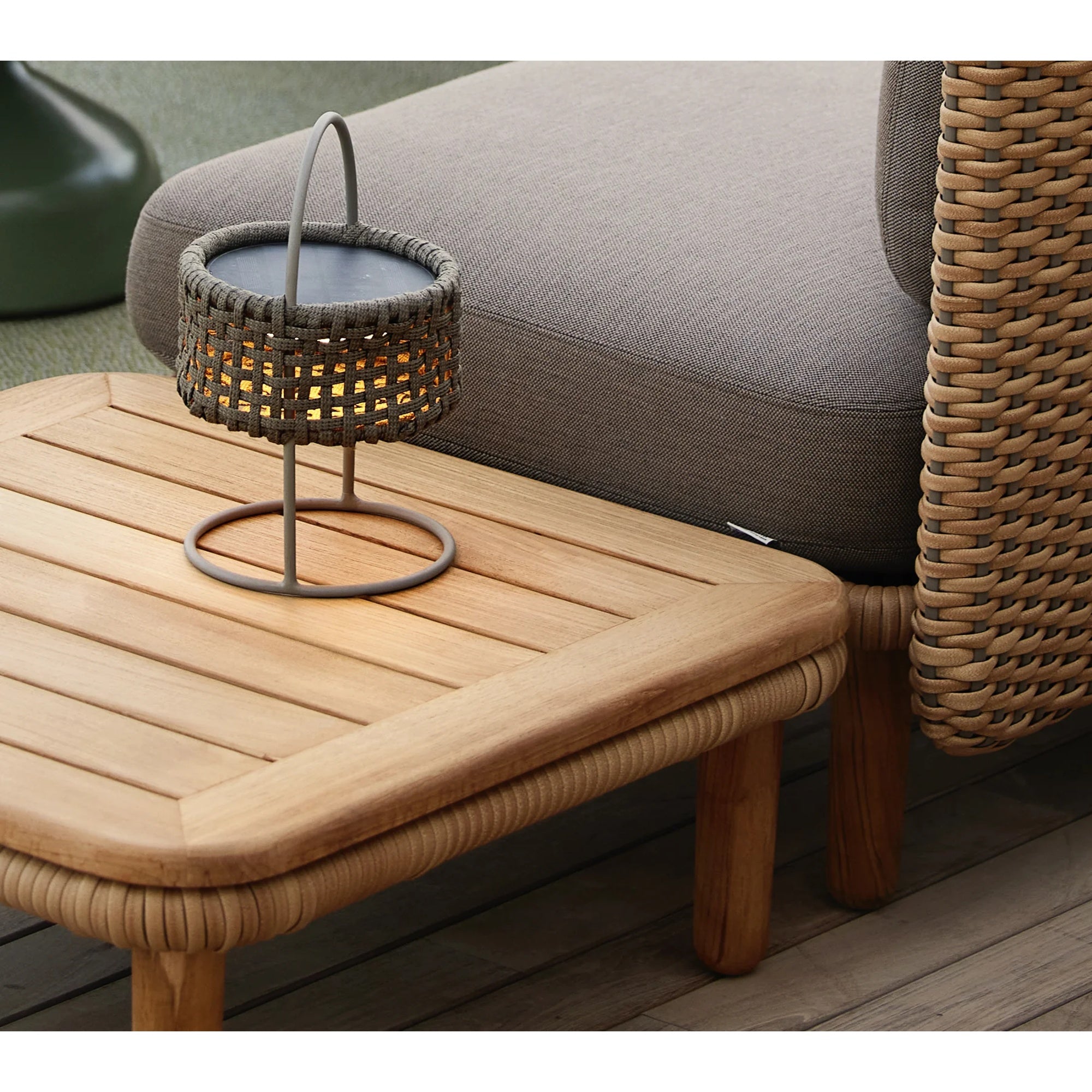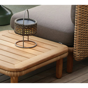 Crafted with a natural-colored weave and teak accents, this piece brings both beauty and durability to your outdoor space.