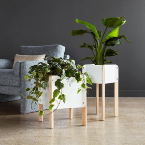 Inspired by Bauhaus design principles, the Atrium Planter lets you nurture your green thumb at home or the office. Form follows function with straightforward shapes that let your plants do the talking. The industrial design of the planter is contrasted by warm wood legs that provide plenty of support. Available in two heights, it easily melds into modern surroundings. High or low, how does your garden grow?