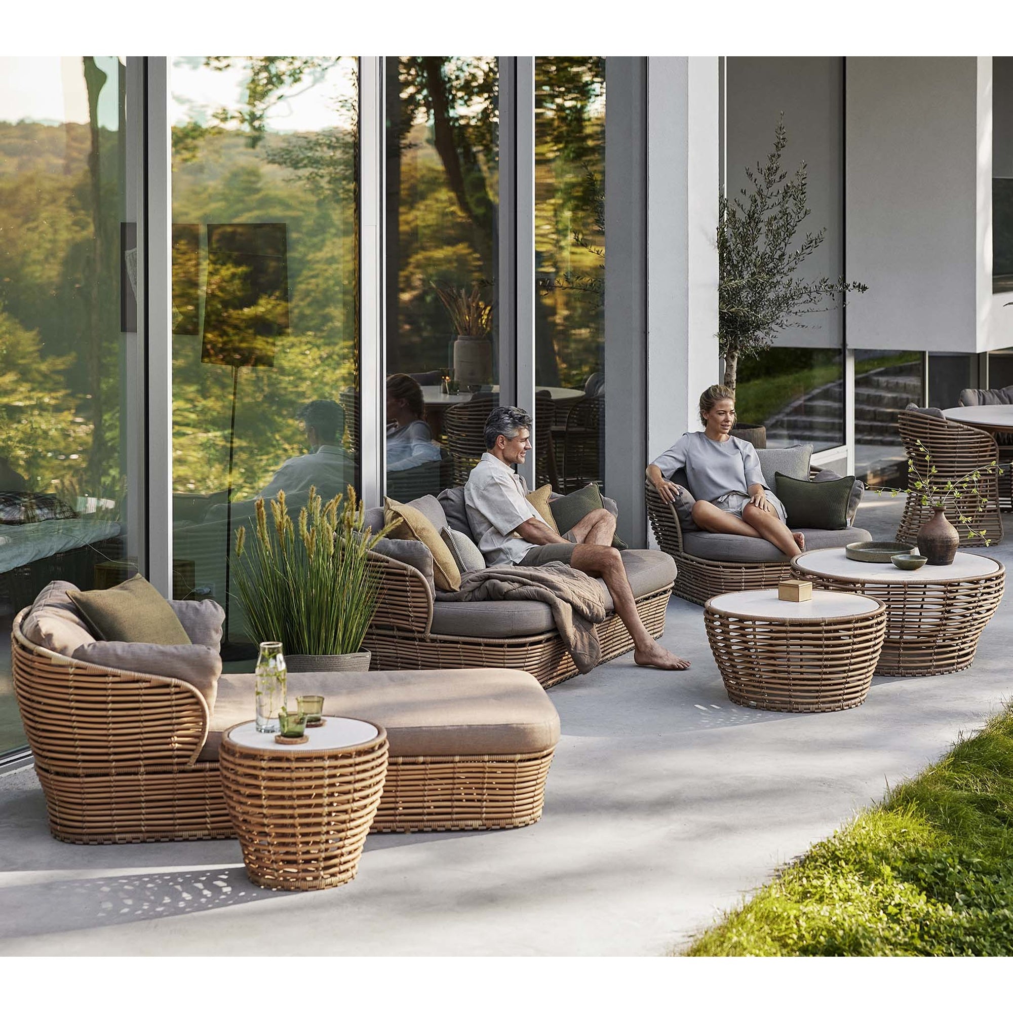 Crafted with durable Cane-line Weave® on a hot-dip galvanized steel frame, this piece is built to withstand the elements. The plush Cane-line AirTouch cushions are produced with an innovative QuickDry & Airflow system, ensuring they are dry approximately one hour after a downpour.