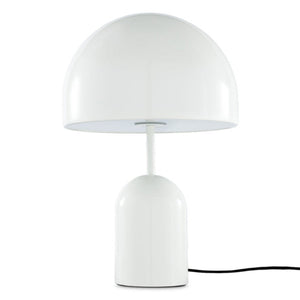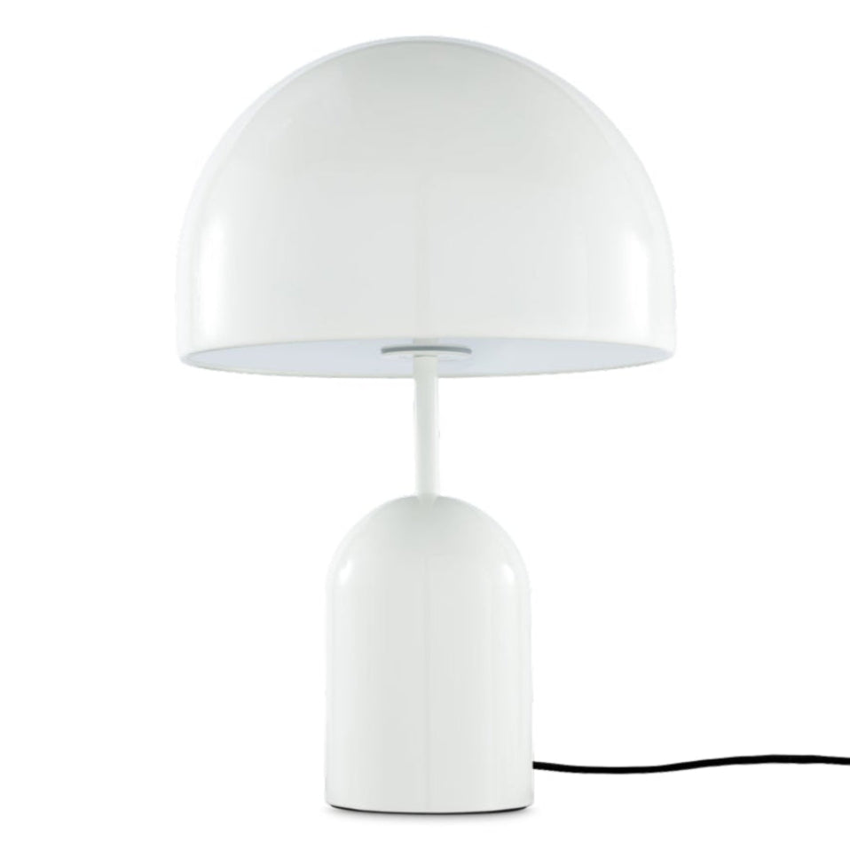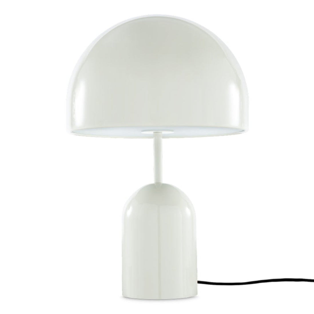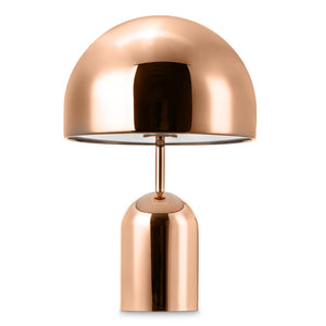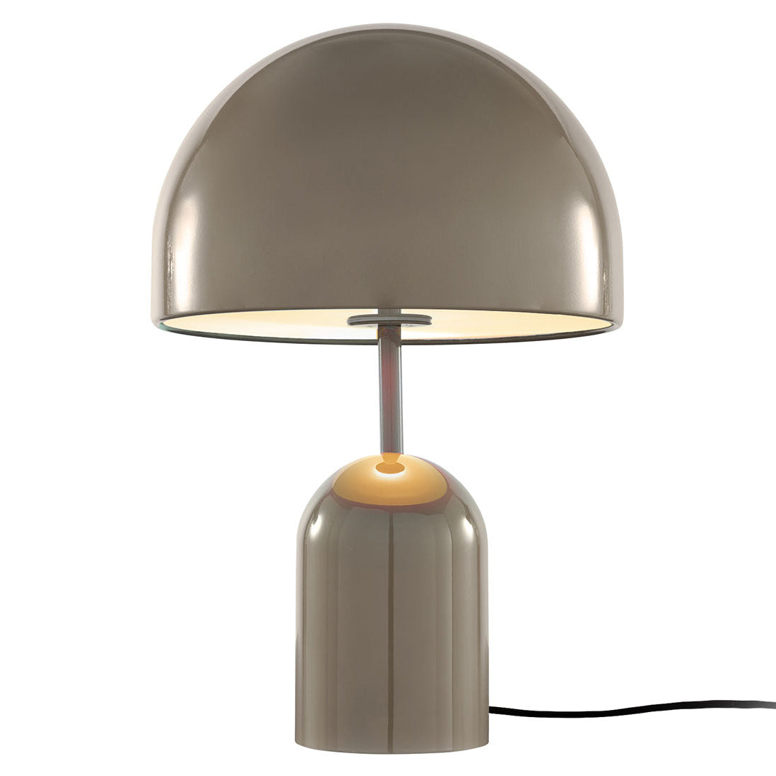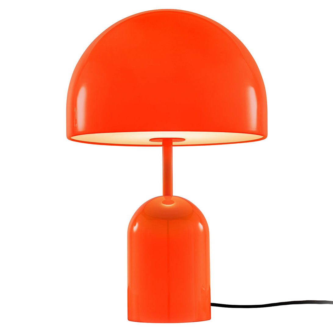 The Bell table lamp by Tom Dixon is a minimalist, high-gloss table lamp inspired by vintage car bumpers. Crafted from plated pressed steel, it mirrors its surroundings while a concealed diffuser emits soft light. This table light is available in a range of colorways and includes an energy-efficient 3000k LED soft light fitting.
