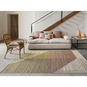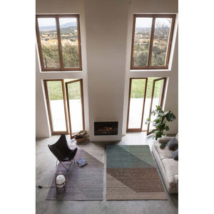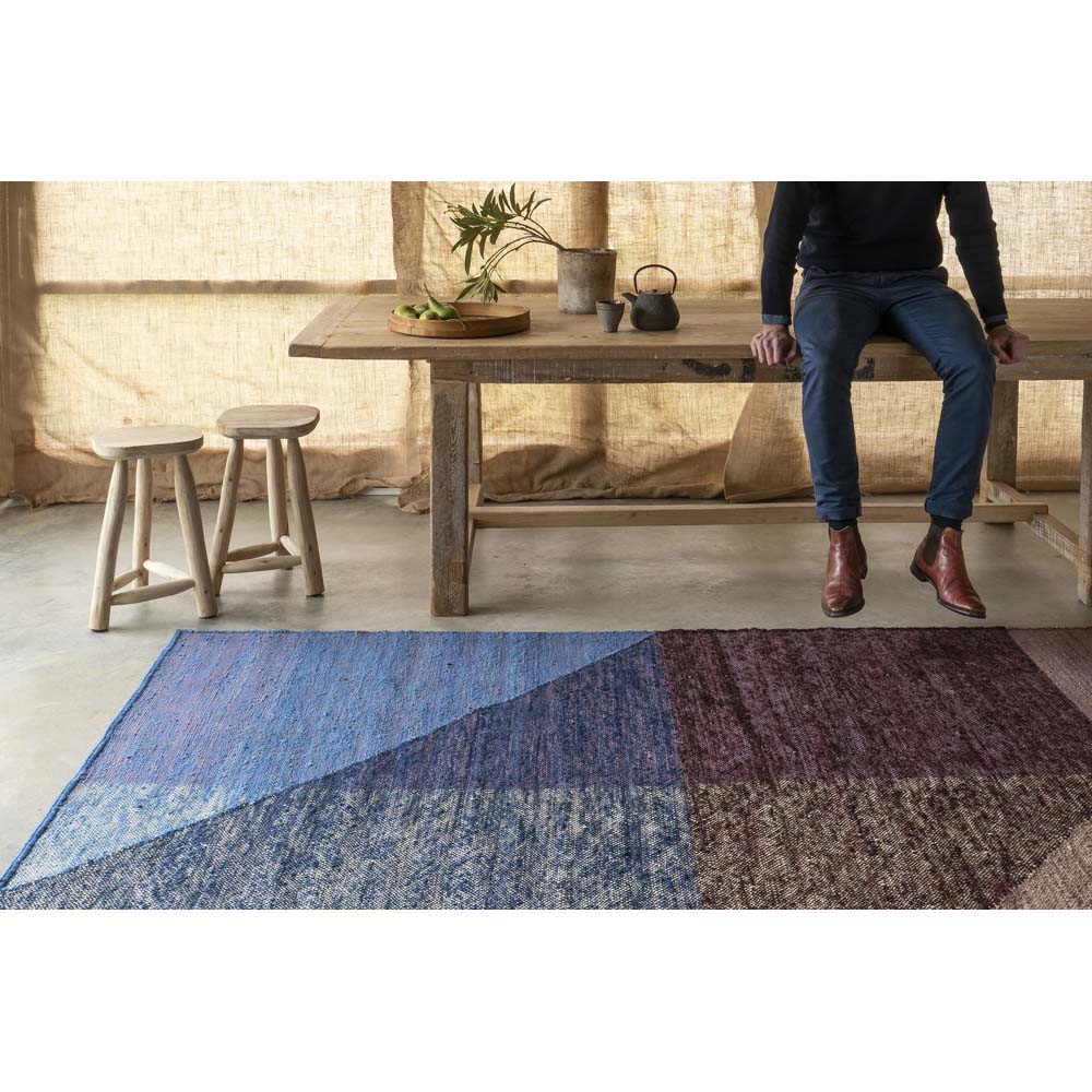 After months of investigation, Nanimarquina and Hahn developed a new type of loose Kilim structure which allows mixing the colors of the warp and weft. Normally, warp is not visible in a Kilim. By defining a different density of warp new tonalities surfaced, providing a visual texture where colors intertwine with each other along the carpet. The unique texture creates a dark-and-light effect and great profundity without becoming heavy. Like the layers of air in the atmosphere that reflect light and cast shadow.