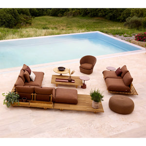 Designed by Cane-line Design, this robust circular piece offers a blend of modern aesthetics and exceptional durability, suitable for both indoor and outdoor lounging. Crafted with Cane-line Soft Rope, this hypoallergenic creation brings a unique visual appeal to any setting with its distinctive ringed pattern, while providing a stable and comfortable experience. Its sturdy construction ensures stability even in windy conditions.