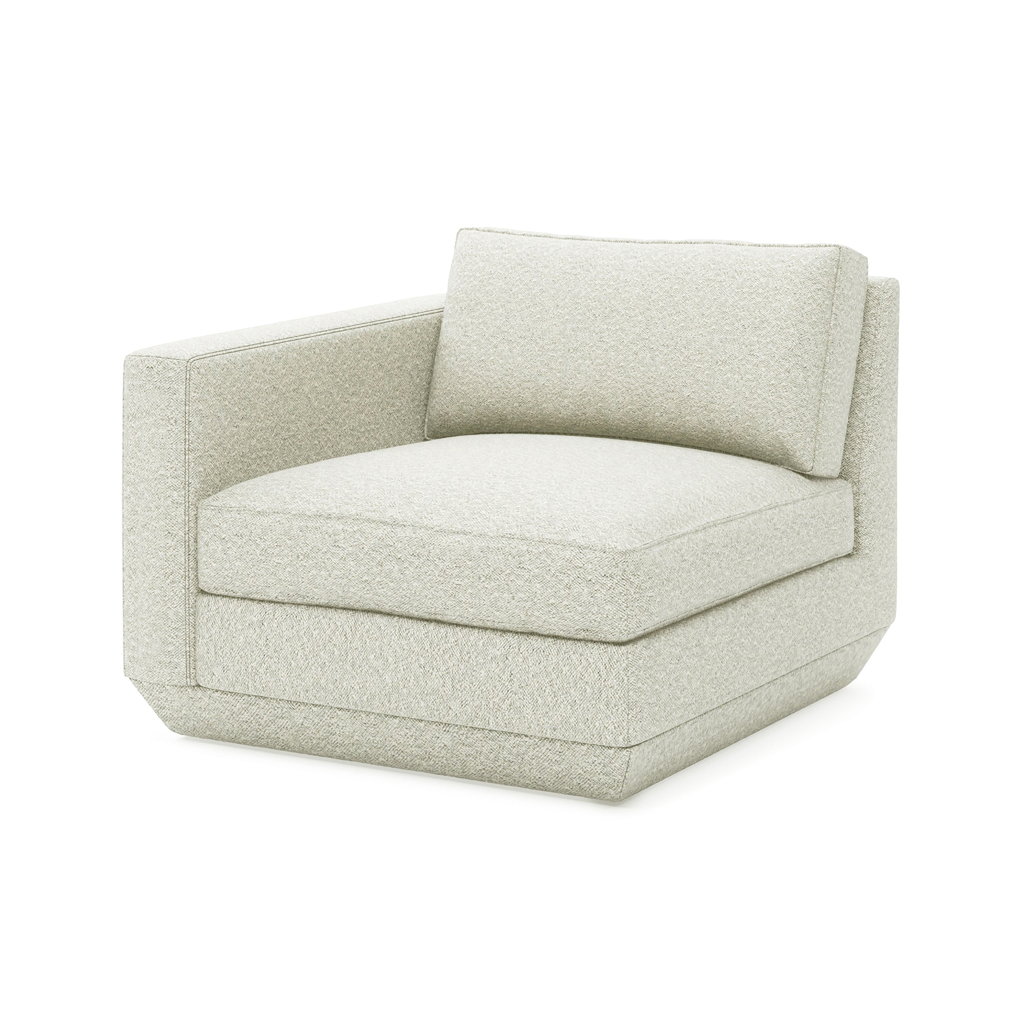 The Podium Modular Collection is an adaptable seating system that brings modern elegance and luxurious comfort to any space. The Podium features seven core components (Right Arm, Left Arm, Armless, Corner, Ottoman, Left Lounge and Right Lounge) that can be arranged in unlimited configurations to suit any vision or layout. Components can then be easily reconfigured or added later to adapt to your evolving lifestyle. Each component showcases a relaxed silhouette inspired by 1970’s Modernism: a low and deep sit created by plush seat and back cushions (filled with eco-friendly synthetic down derived from recycled water bottles), and an attractive, subtly angled, chamfered base. The frames are constructed with kiln-dried 100% FSC®-Certified hardwood in support of responsible forest management.