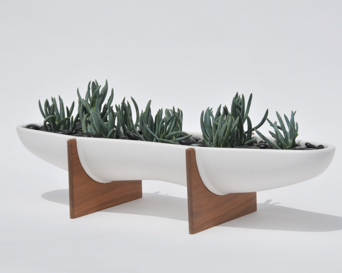 The F-107 planter is sleek and urban. Originally designed in the 1950s by Architectural Pottery. These iconic planters are as celebrated today as they were then. Part planter, 100% sculpture. A single planter can really make a room.