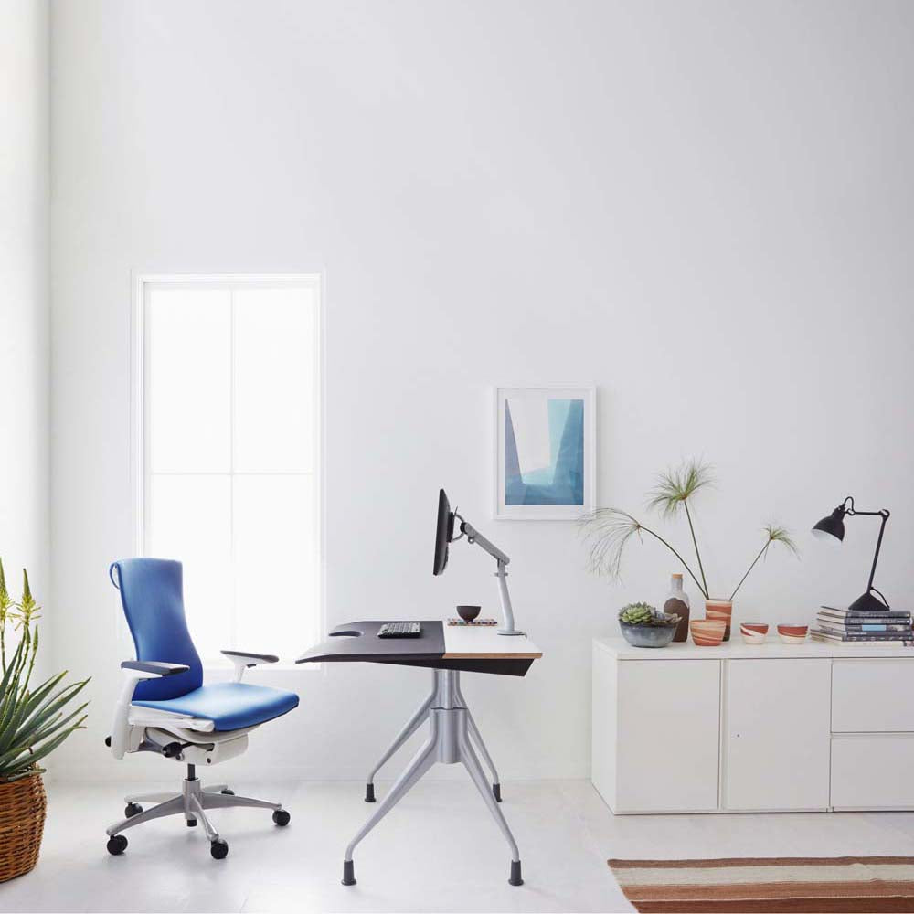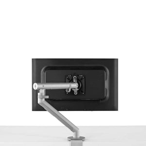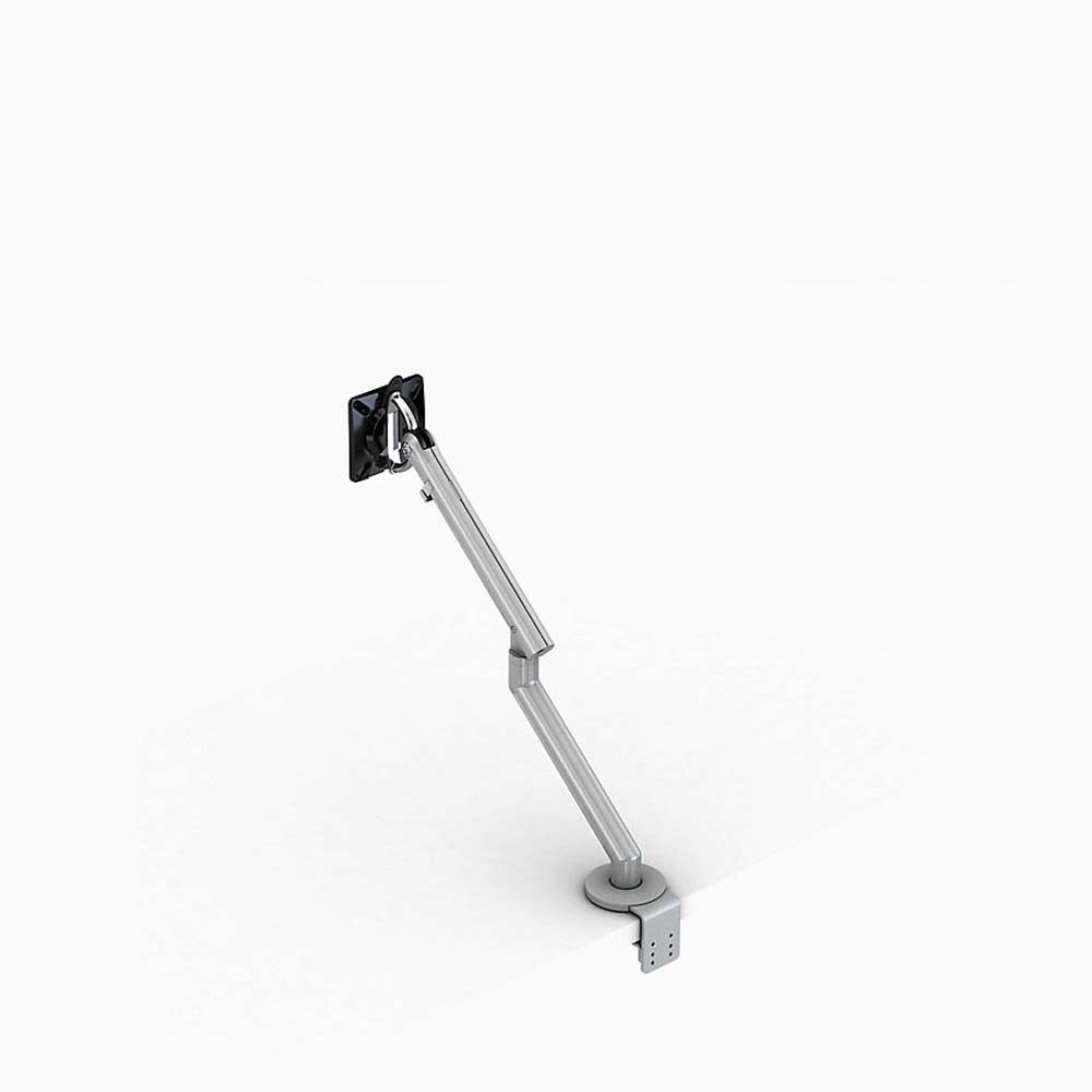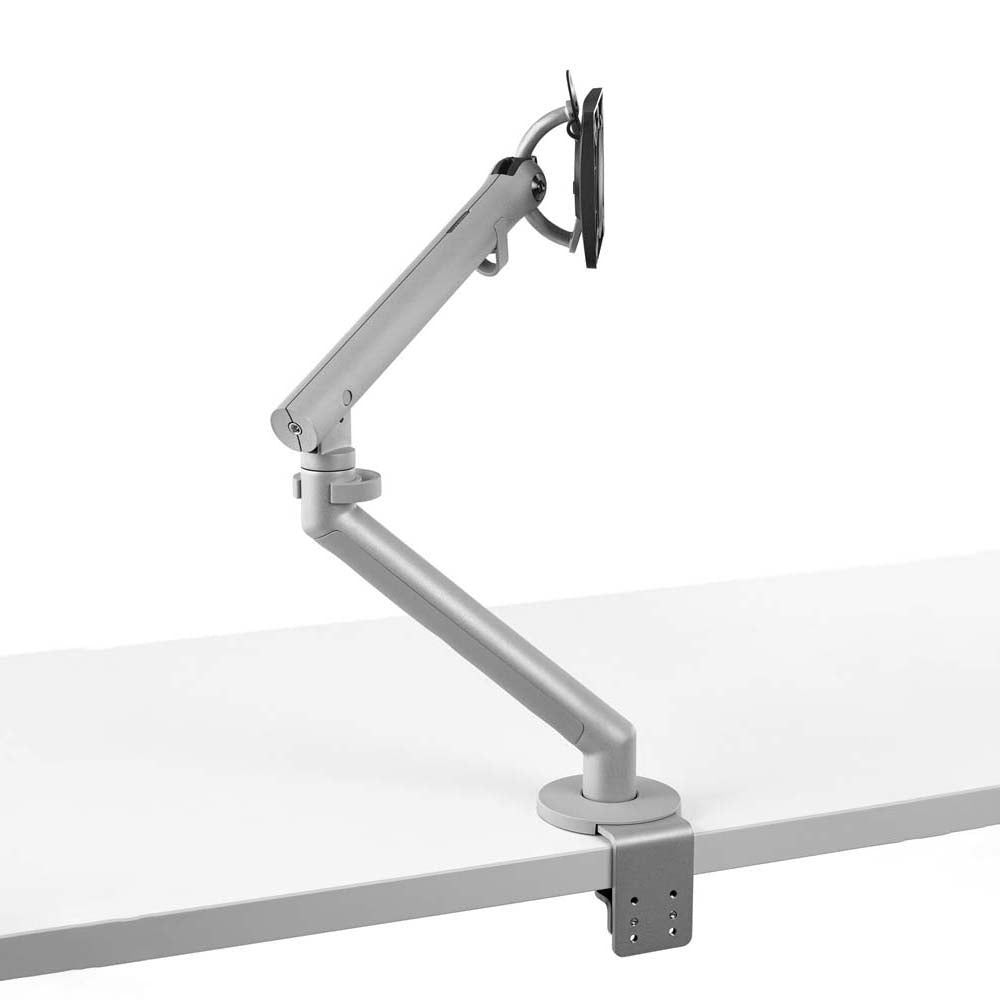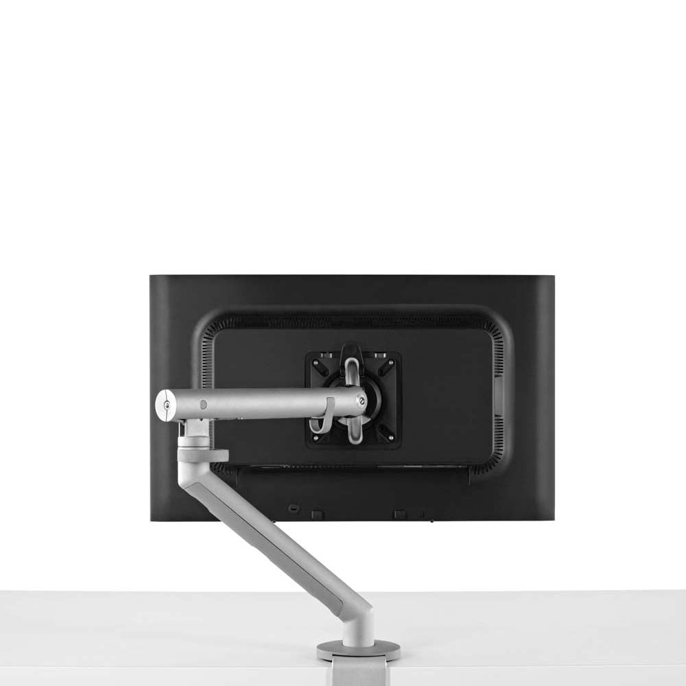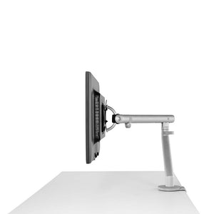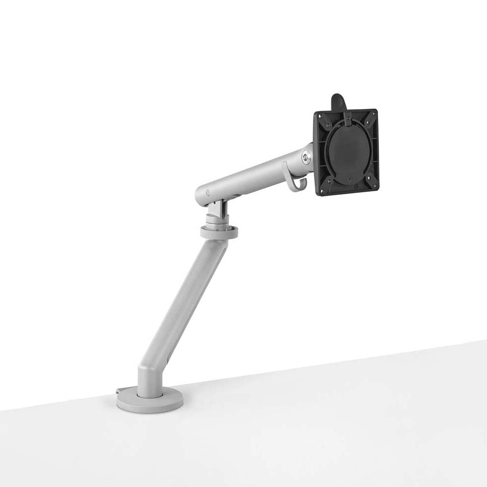 The Flo Monitor Arm by Herman Miller® lets you position your computer screen in the vertical, horizontal, and tilt position you need to reduce eye strain and encourage a more healthful posture as you work. Compatible with any desk or tabletop greater than 1 1/8" and less than 2 3/4" thick.