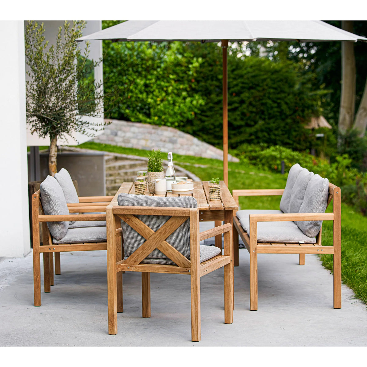 To maintain the original golden-brown color and preserve the integrity of the teak wood, Cane-line Teak Care products are recommended.