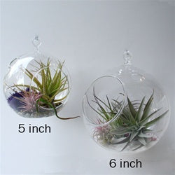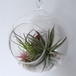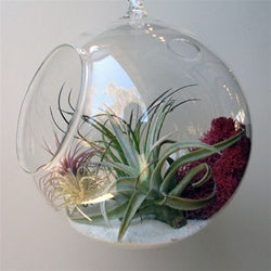 These hanging orb terrariums are lovely ecosystems under glass. Fascinating, prehistoric-looking tillandsia air plants are featured in a hanging glass bubble. Each terrarium is unique...no two plants are exactly alike. You'll receive a variety of unique and healthy specimens. Hang one bubble terrarium in a special spot or group them for the ultimate in living decor.